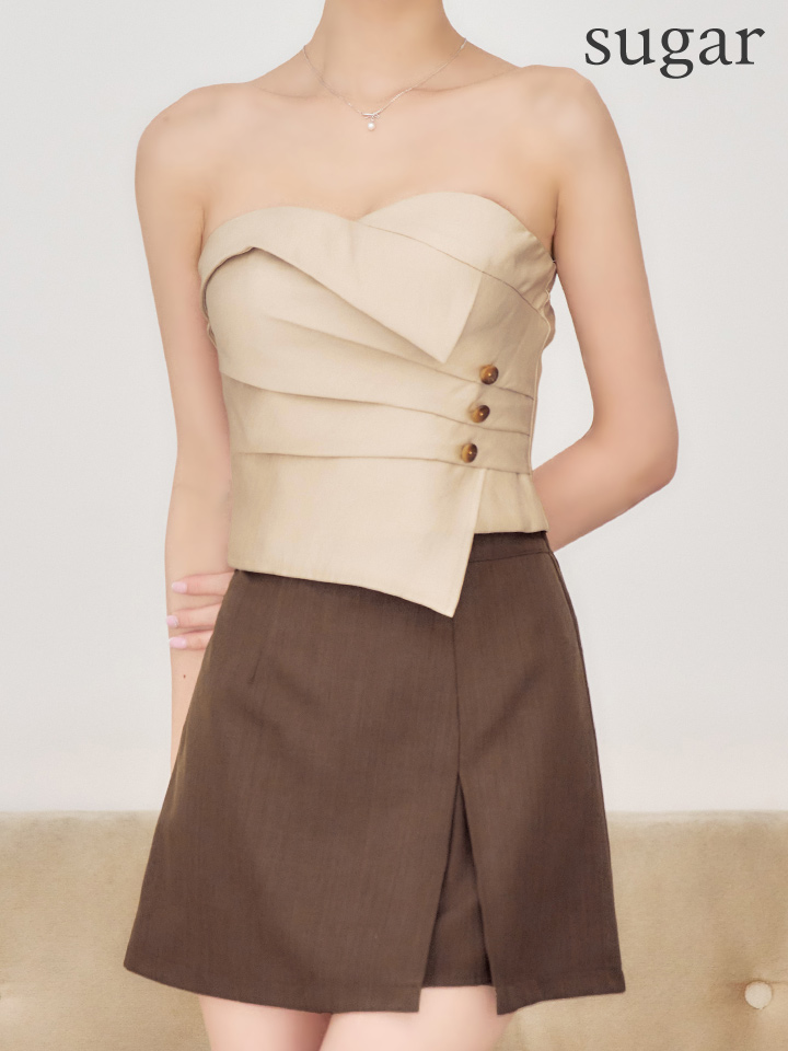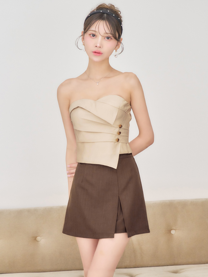 取り外し可能な肩紐付きなので、ベアトップとショルダーの2WAYで着用可能です。