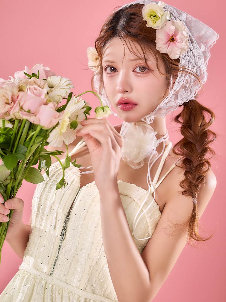 ふんわり広がるフリルスカートが可愛らしい印象を与えます。