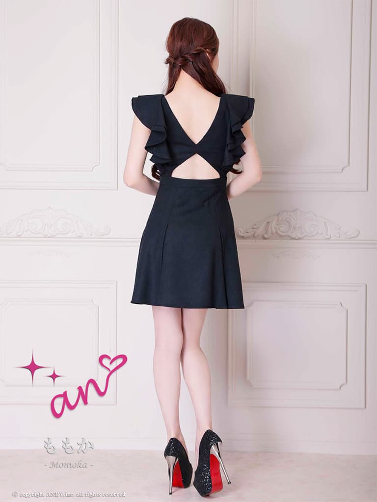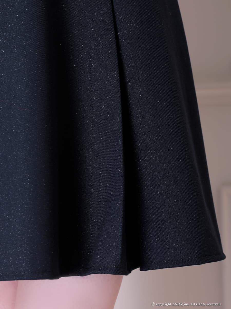 XSサイズあり【an/アン】リボンブローチ付き/ バストジップ/ ショルダーフリル/ ラメ/ バックオープン/ フレア/ ミニドレス/ キャバドレス[OF05] [AOC4069-NV-2602]