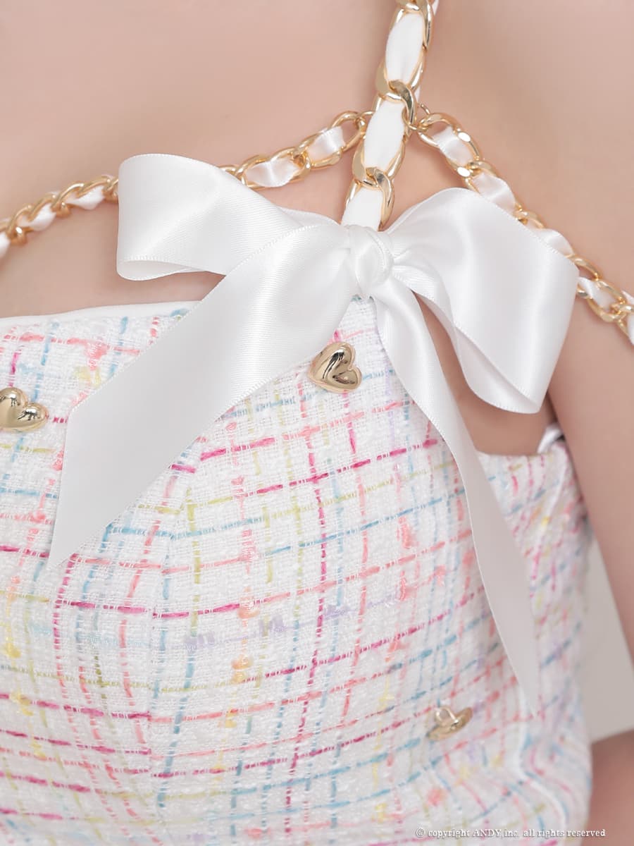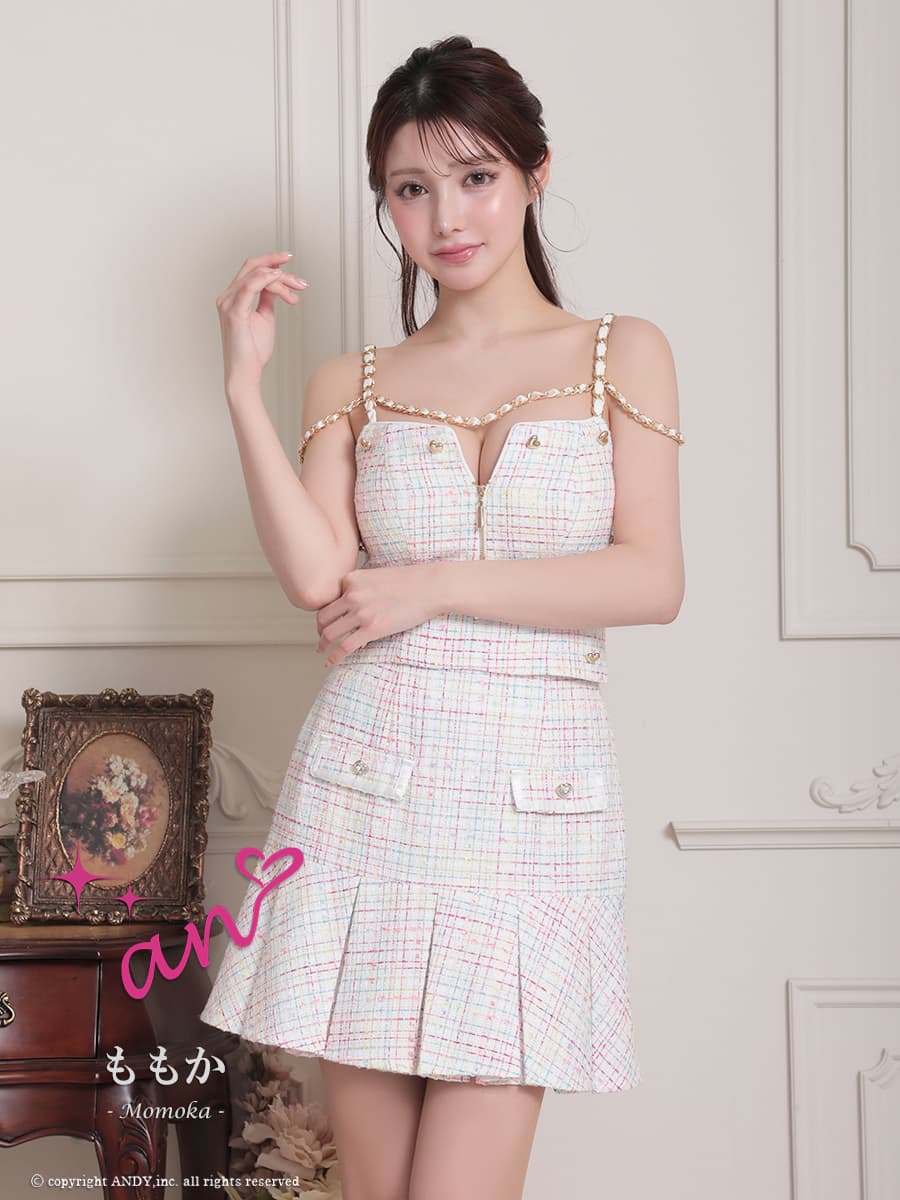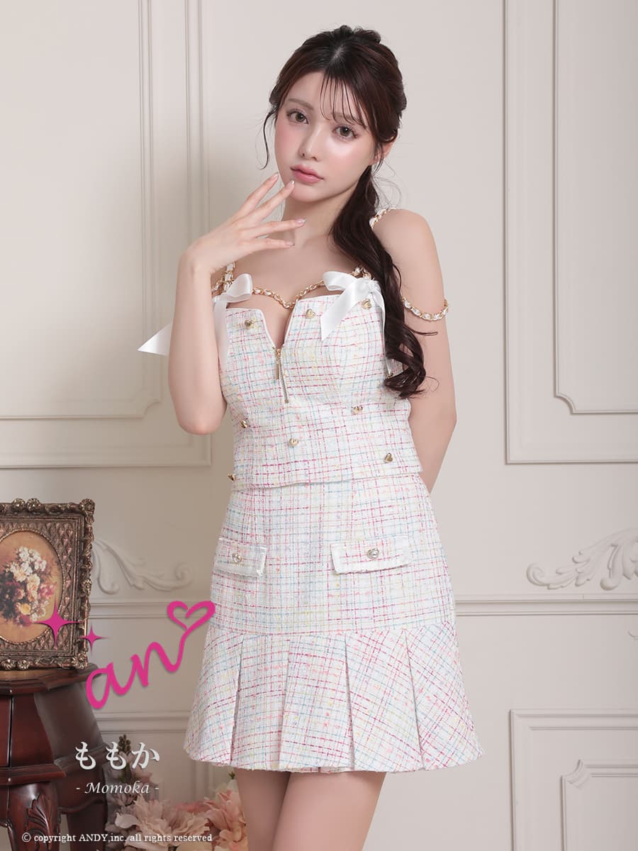 XSサイズあり【an/アン】チェック柄/ MIXツイード/ バストジップ/ チェーン/ キャミソール/ ハートモチーフ/ プリーツ/ セットアップ/ フレア/ ミニドレス/ キャバドレス[OF05] [AOC3828-Wmix-2602]