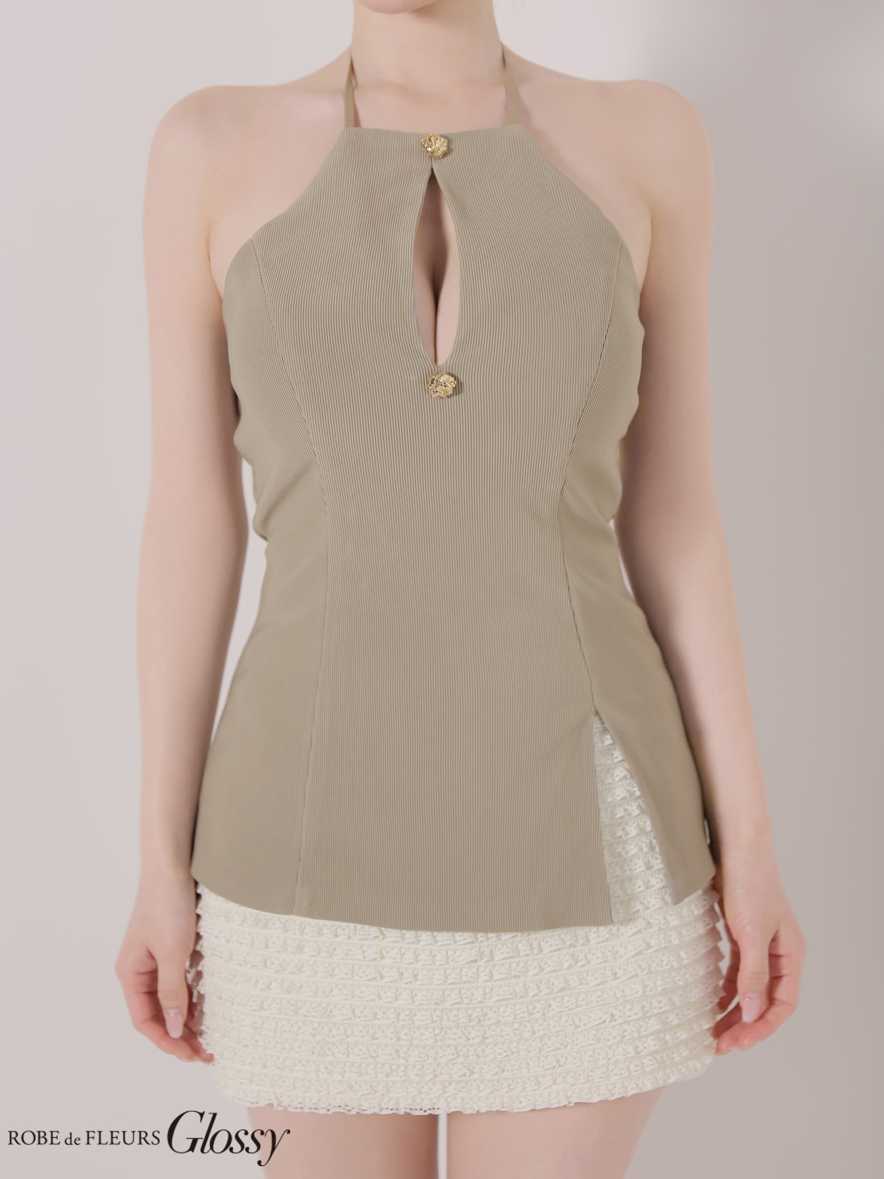 【予約商品/2月下旬発送予定】XSサイズあり【Glossy/グロッシー】リブ/ ホルターネック/ レーススカート/ セットアップ/ バイカラーあり/ タイト/ ミニドレス/ キャバドレス[OF08] [GL4175-IV-2602]