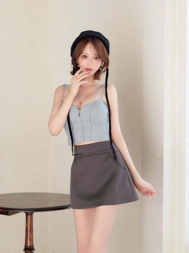 バスト約73-79cm ウエスト約55-63cm ヒップ約85cm 着丈(トップス)脇下約21cm (スカート)約32cm |