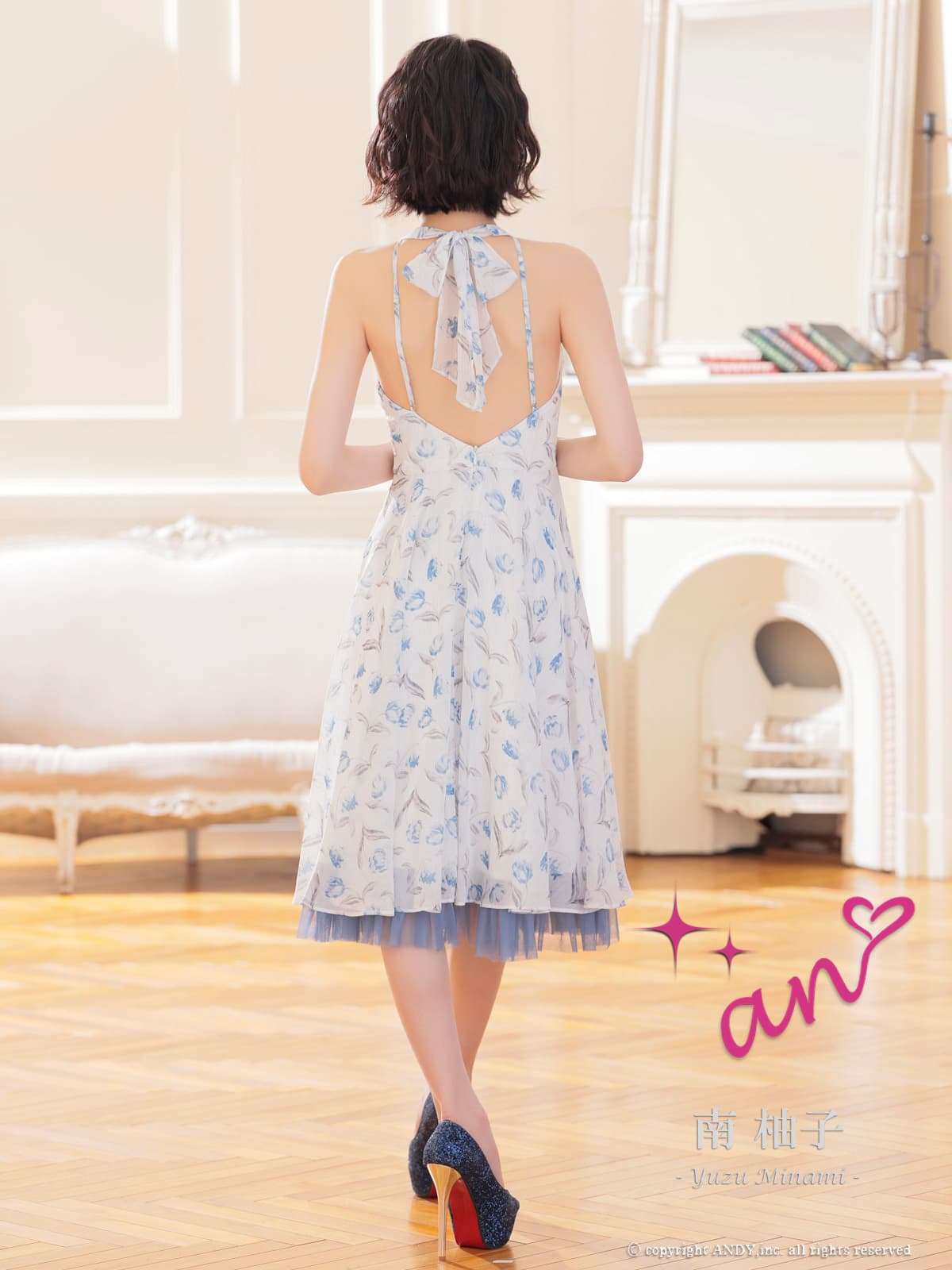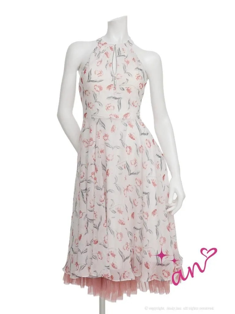 【予約商品/2月下旬発送予定】XSサイズあり【an /アン】フラワープリント/ ホルターネック/ フリル/ ワンピース/ フレア/ Aライン/ ミディアムドレス/ キャバドレス[OF05] [AOC4085-P-2602]