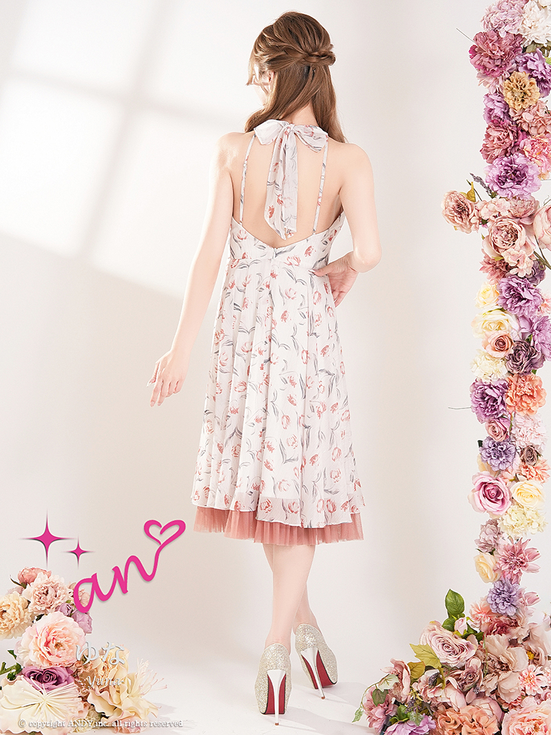 XSサイズあり【an /アン】フラワープリント/ ホルターネック/ フリル/ ワンピース/ フレア/ Aライン/ ミディアムドレス/ キャバドレス[OF05] [AOC4085-BL-S260210]