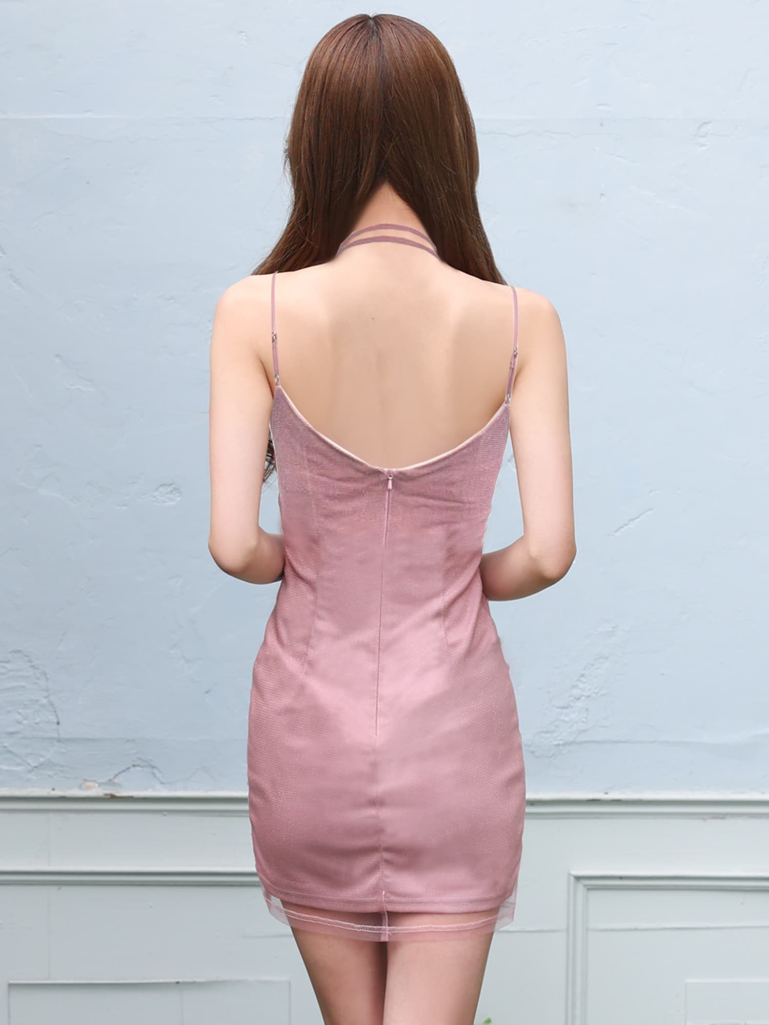 【予約商品/2月中旬-2月下旬発送予定】XSサイズあり【ANGEL R/エンジェルアール】ネッククロスデザイン/ フラワー/ ビジュー/ メッシュ/ アシンメトリー/ ラメ/ タイト/ ミニドレス/ キャバドレス[OF2] [AR26209-CHP-2602]