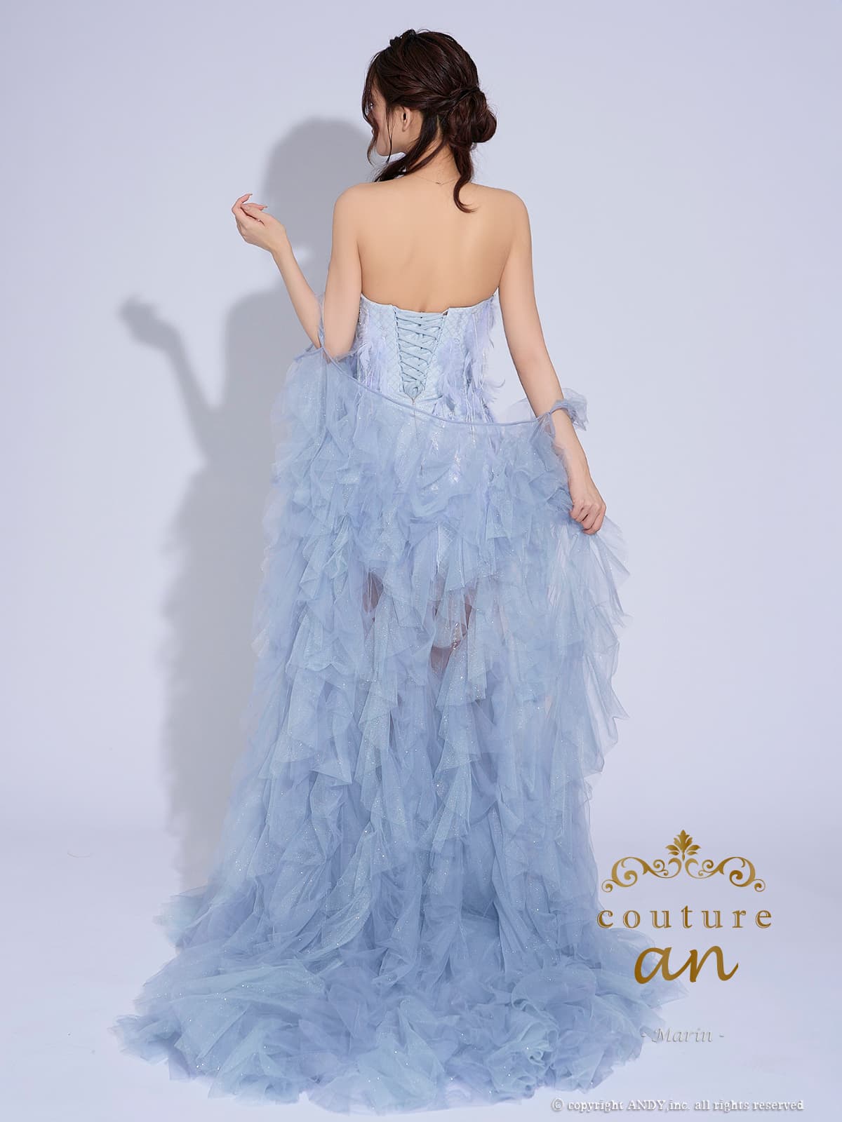 【couture an/クチュールアン】ベア/ ケープ付き/ フェザー/ ビジュー/ シアー/ スパンコール/ チュール/ フリル/ フレア/ マーメイド/ プリンセス/ ロングドレス/ キャバドレス long[OF05] [AOC-WD-057-BL-2602]