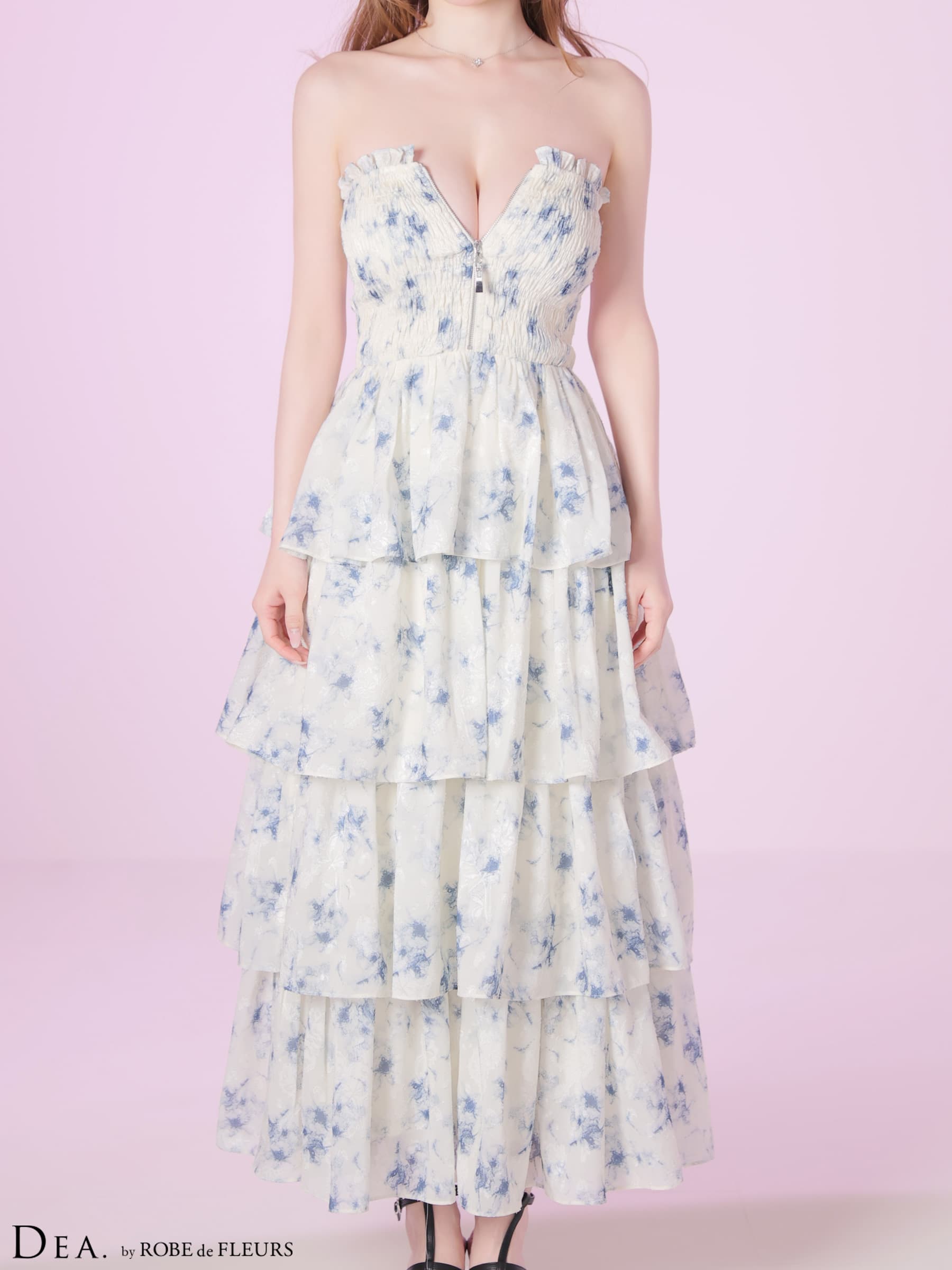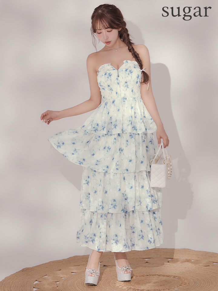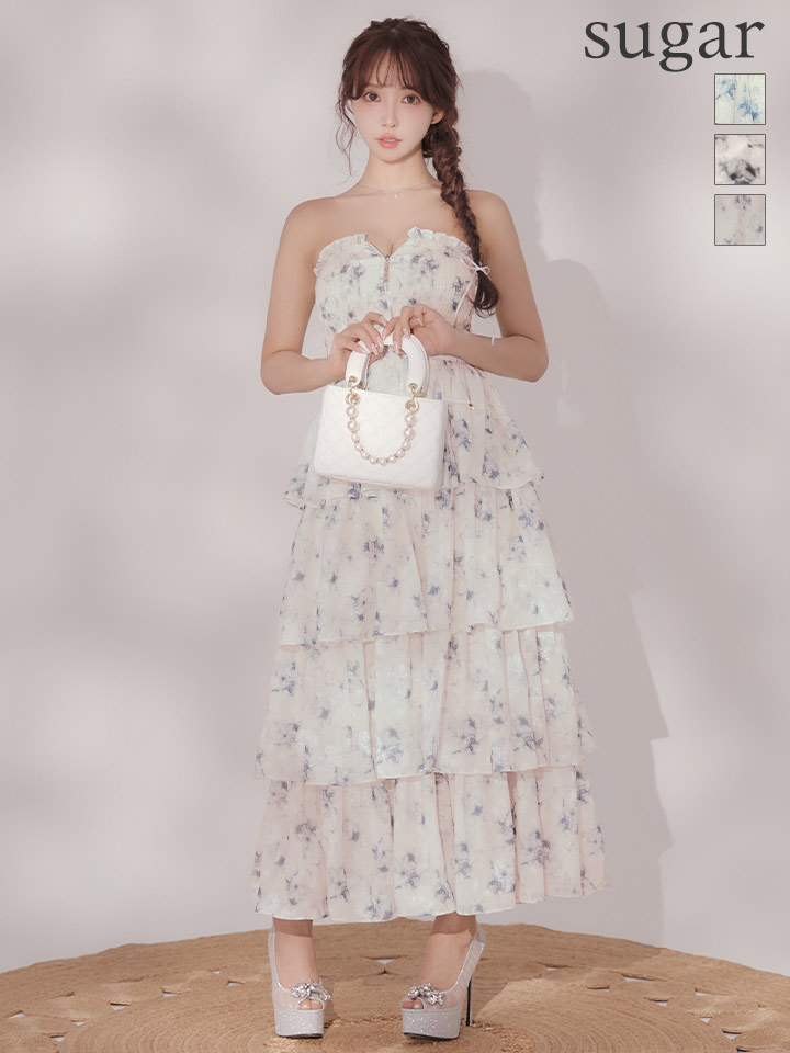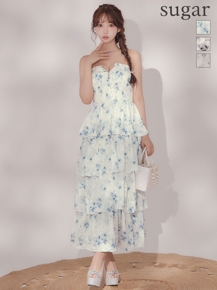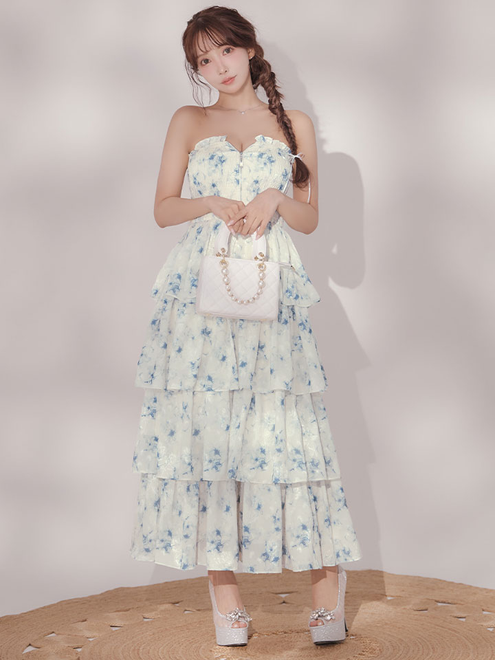 【予約商品/3月上旬発送予定】XS-Lサイズあり【DEA./ディア】フラワー/ ジャガード/ シフォン/ ティアード/ フレア/ ワンピース/ ミディアムドレス/ キャバドレス long[OF08] [DE4641-B-S260210]