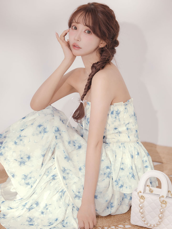 #キャバクラ #キャバ嬢 #キャバクラドレス #花柄 #ジャガード #ベア #フレア #ティアード