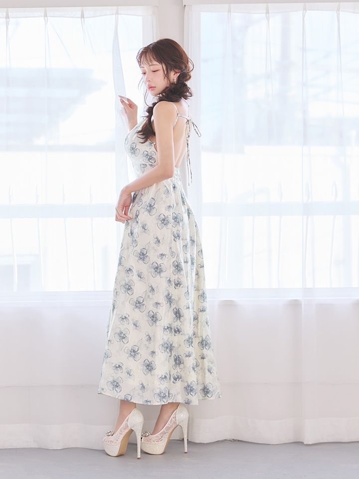 【予約商品/2月中旬発送予定】XS-Lサイズあり【DEA./ディア】バックオープン/ フラワー/ サテン/ フレア/ ワンピース/ ミディアムドレス/ キャバドレス[OF08] [DE4644-LV-S260210]