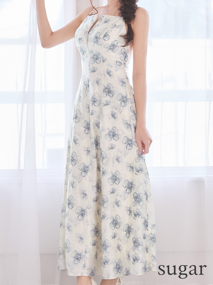 #キャバクラ #キャバ嬢 #キャバクラドレス #花柄 #サテン #バックオープン #フレア #ワンピース
