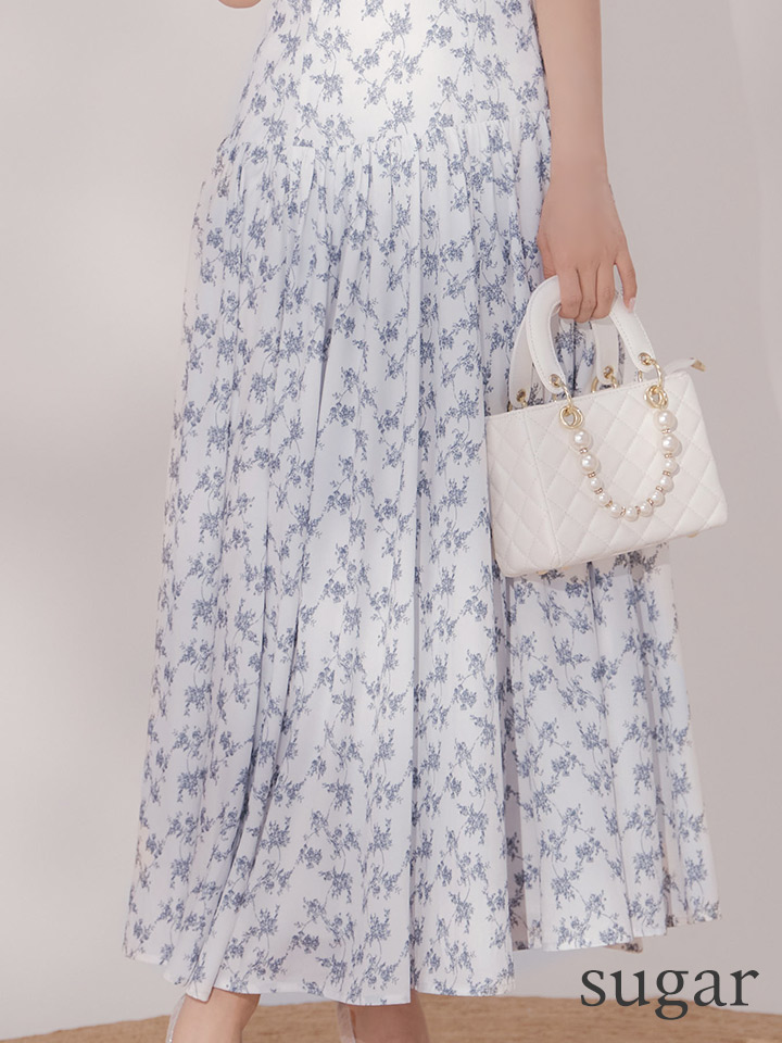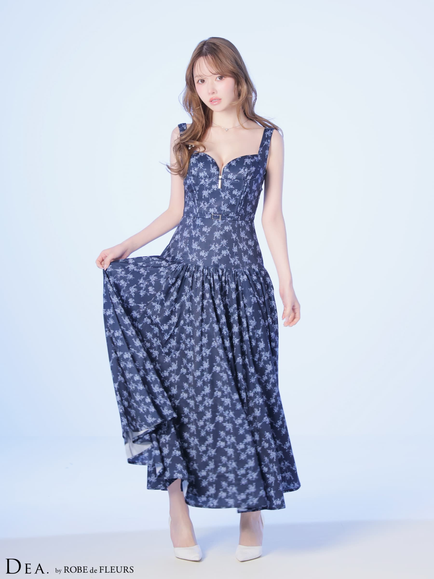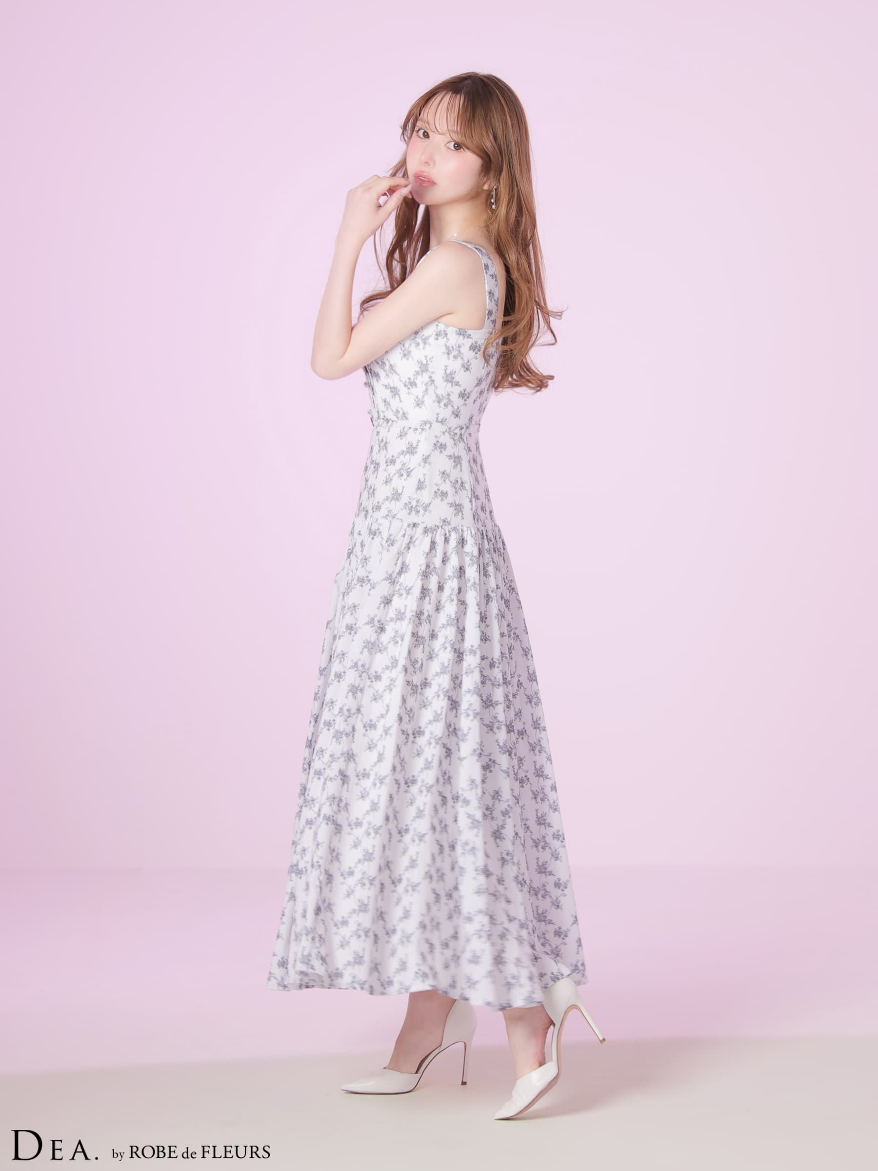 【予約商品/2月中旬発送予定】XS-Lサイズあり【DEA./ディア】フラワー/ マットサテン/ ギャザー/ フレア/ ワンピース/ ミディアムドレス/ キャバドレス[OF08] [DE4352-WxBL-S260210]