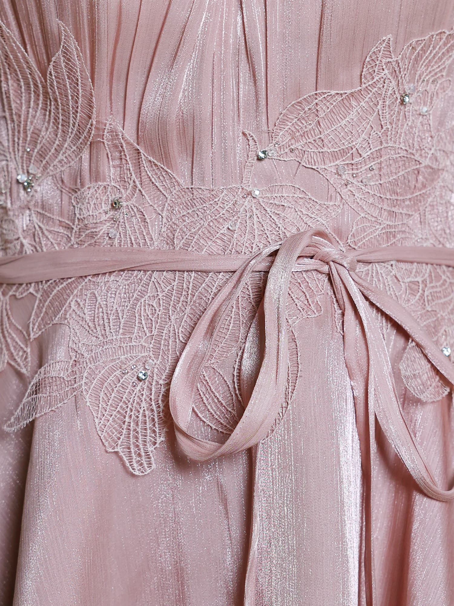 動きに合わせて広がるエアリーなフレアラインが、上品さと可憐さを両立させた主役級ドレスです。
