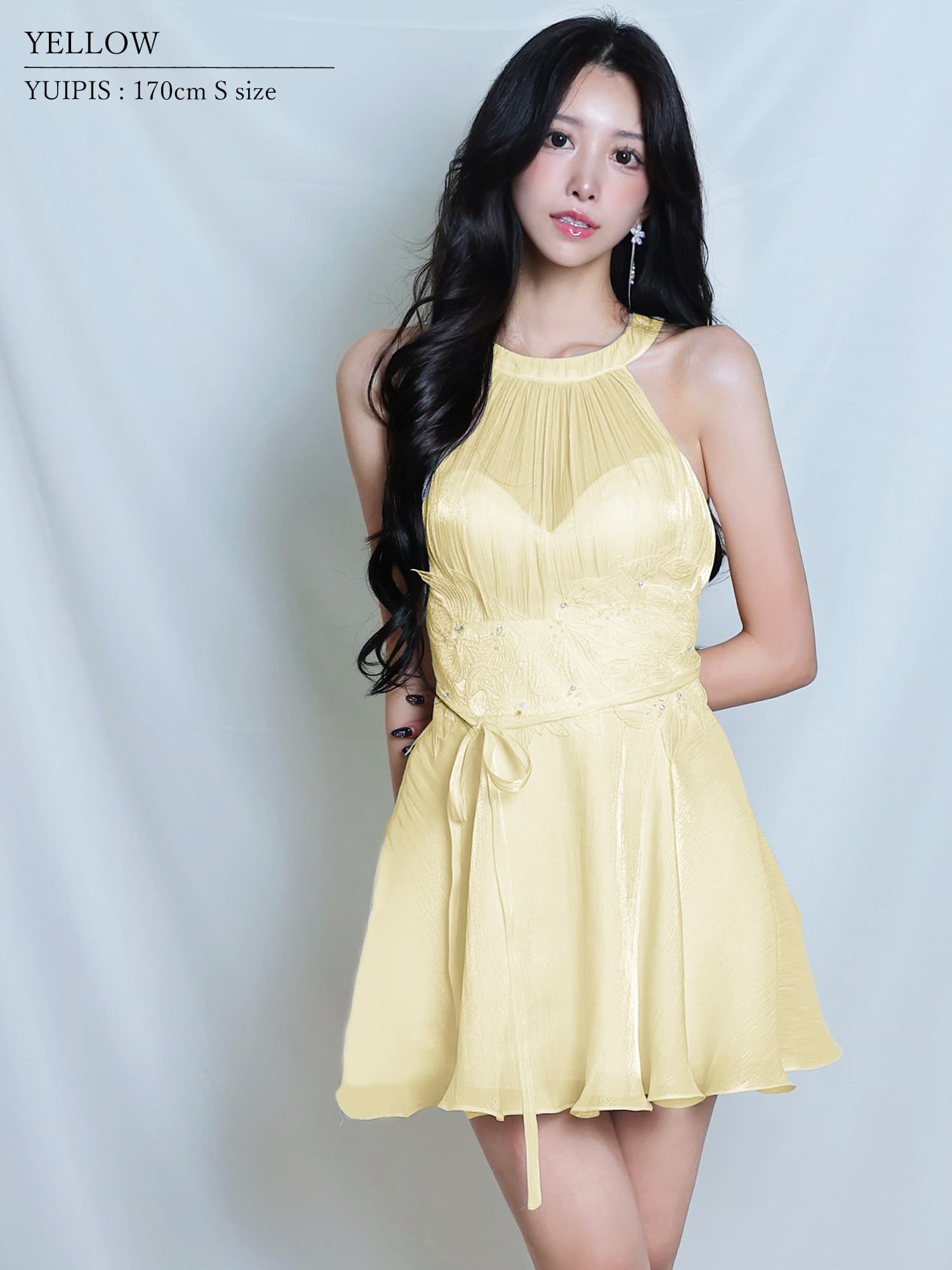 XSサイズあり【ANGEL R/エンジェルアール】アメスリ/ ウエストリボン/ フラワーメッシュ/ ギャザー/ フレア/ マイクロミニドレス/ キャバドレス[OF2] [AR26307-P-2602]