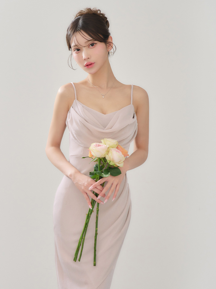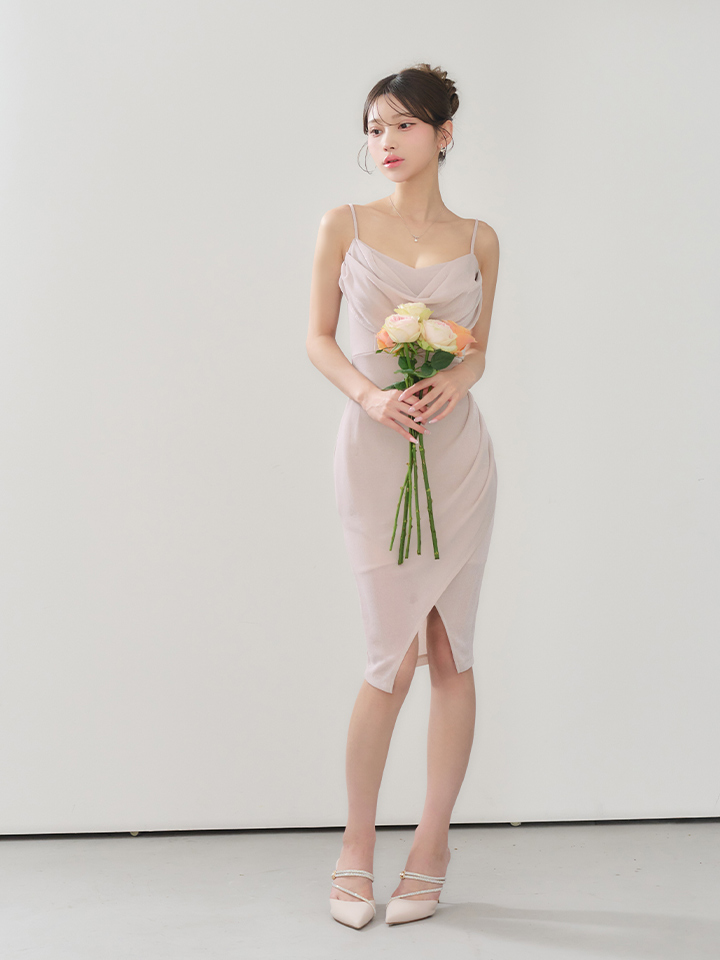 柔らかな生地が織りなす優美なドレープが色っぽいタイトミディアムドレス♡