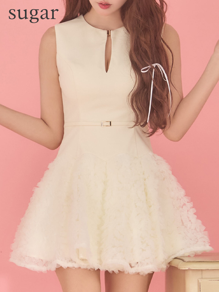 XSサイズあり【ROBE de FLEURS/ローブドフルール】ボリュームチュール/ ドッキングニット/ ベルト/ ノースリーブ/ フレア/ Aライン/ ミニドレス/ キャバドレス[OF08] [FM4900-IV-S260214]