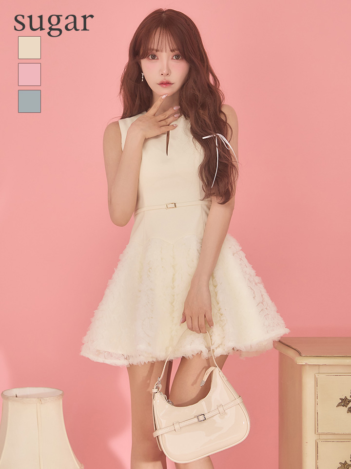 XSサイズあり【ROBE de FLEURS/ローブドフルール】ボリュームチュール/ ドッキングニット/ ベルト/ ノースリーブ/ フレア/ Aライン/ ミニドレス/ キャバドレス[OF08] [FM4900-P-S260214]