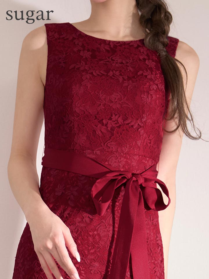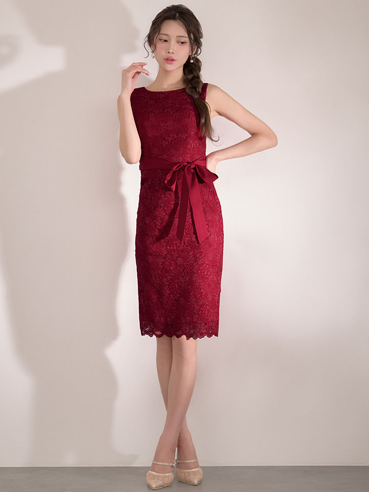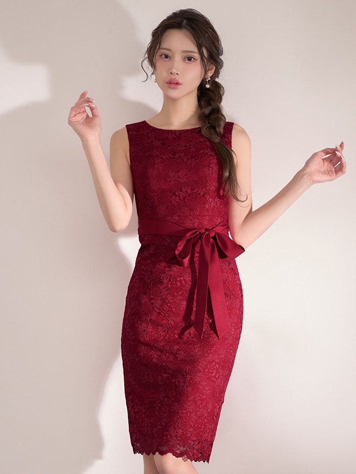 XS-Lサイズあり 【GINZA COUTURE/銀座クチュール】総レース/ ウエストリボン/ ノースリーブ/ タイト/ 膝丈/ ミディアムドレス/ キャバドレス[OF2] [LKC25336-W-S2602]