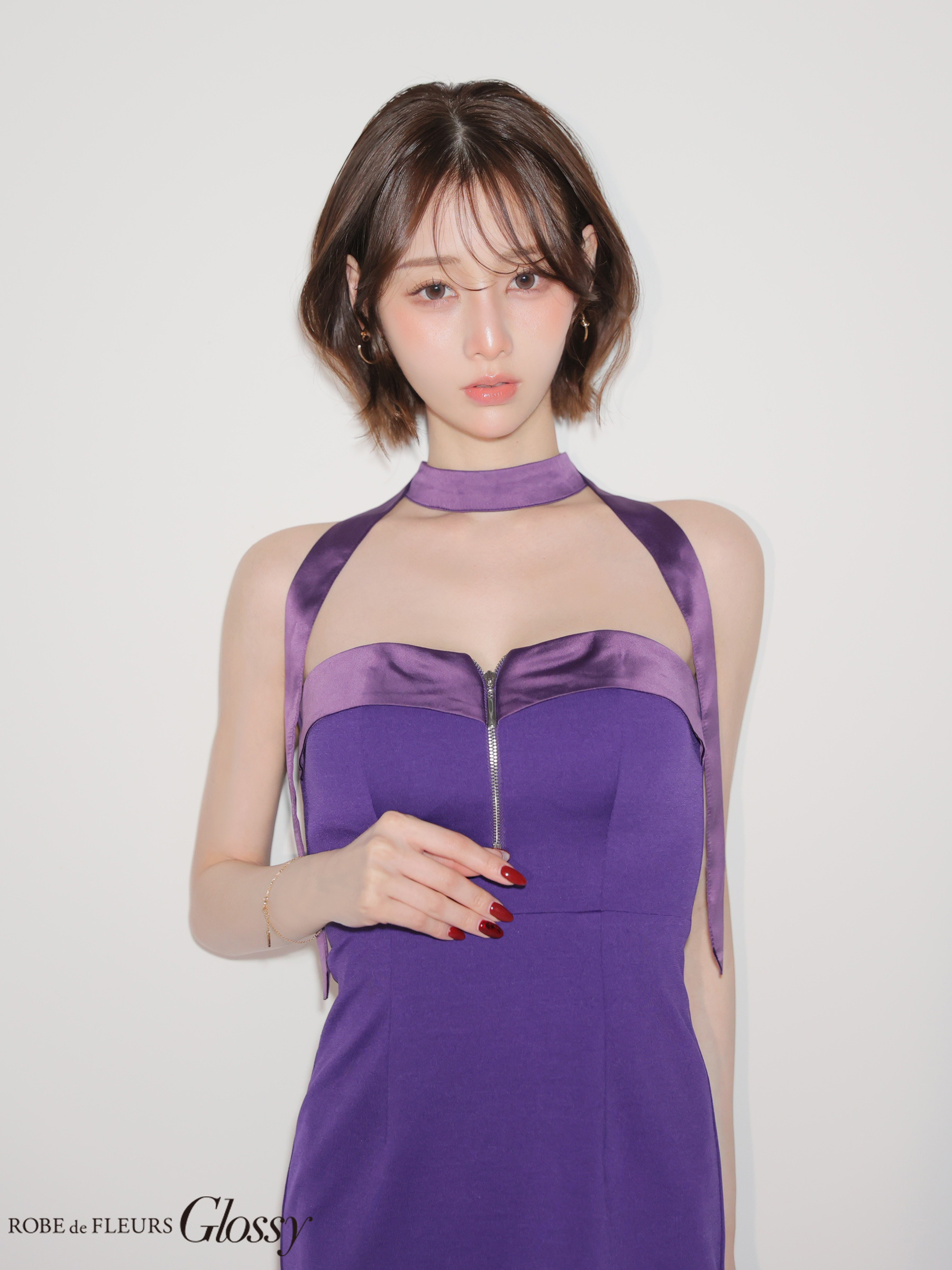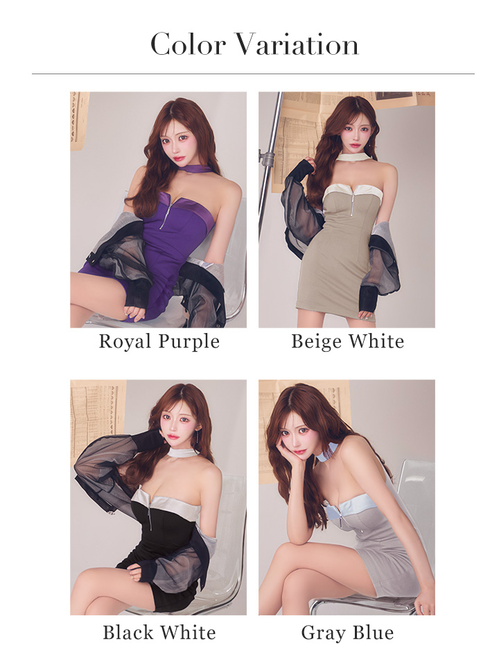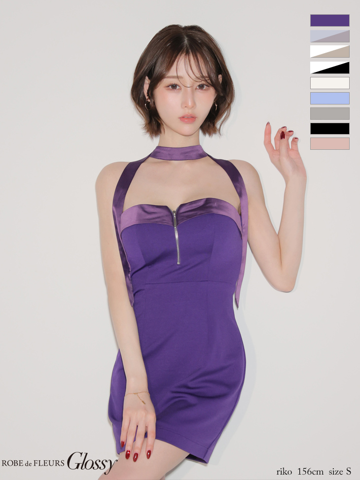 XSサイズあり【Glossy/グロッシー】2way/ チョーカー風/ バストジップ/ バイカラーあり/ タイト/ ミニドレス/ キャバドレス[OF08]【一部予約商品/2月下旬発送予定】 [GL4108-PL-S260216]