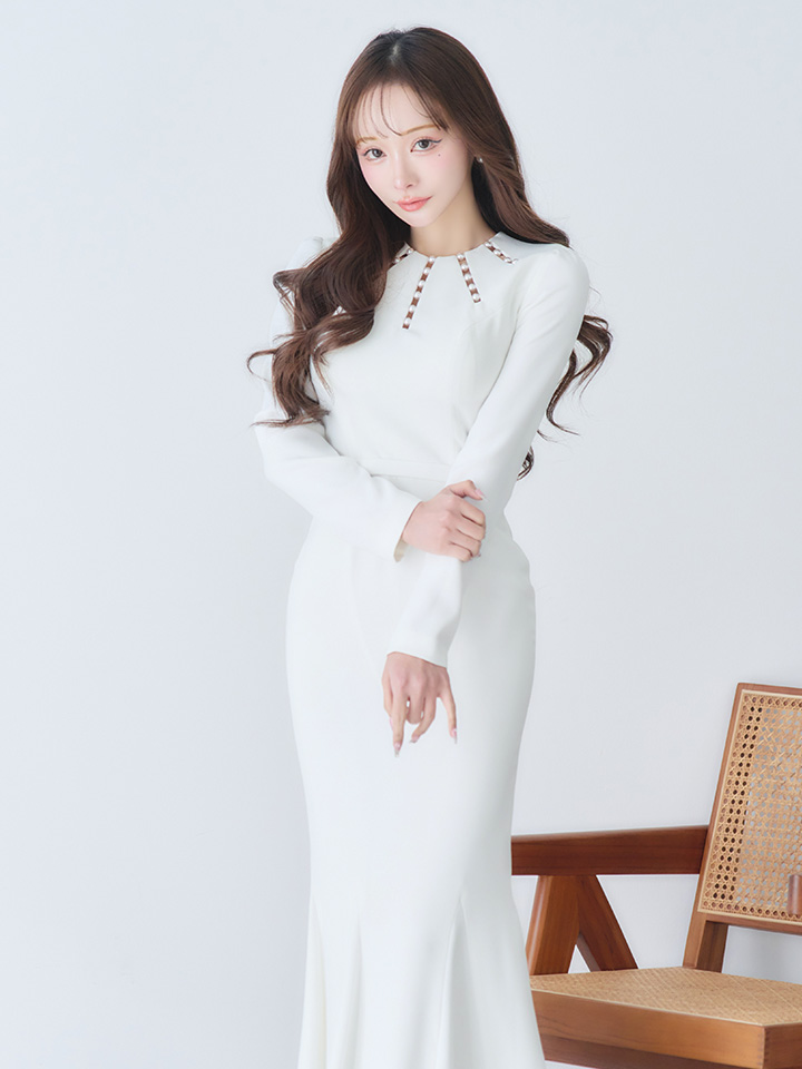 首元には繊細な装飾が施されていてさりげないアクセントに♡
