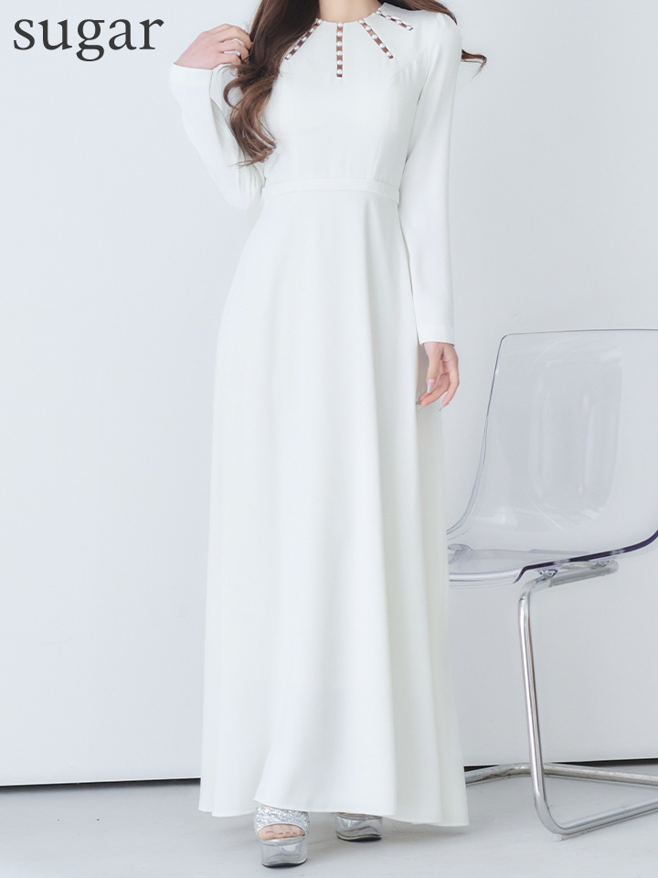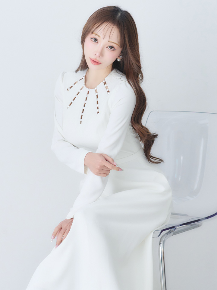 首元には繊細な装飾が施されていてさりげないアクセントに♡