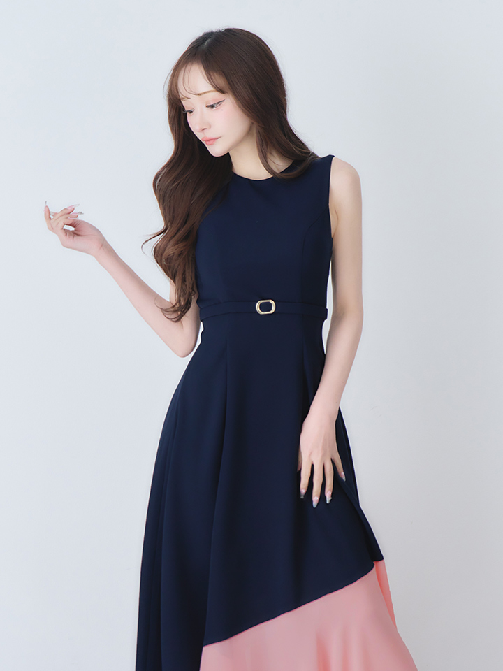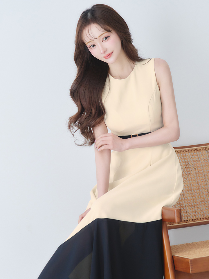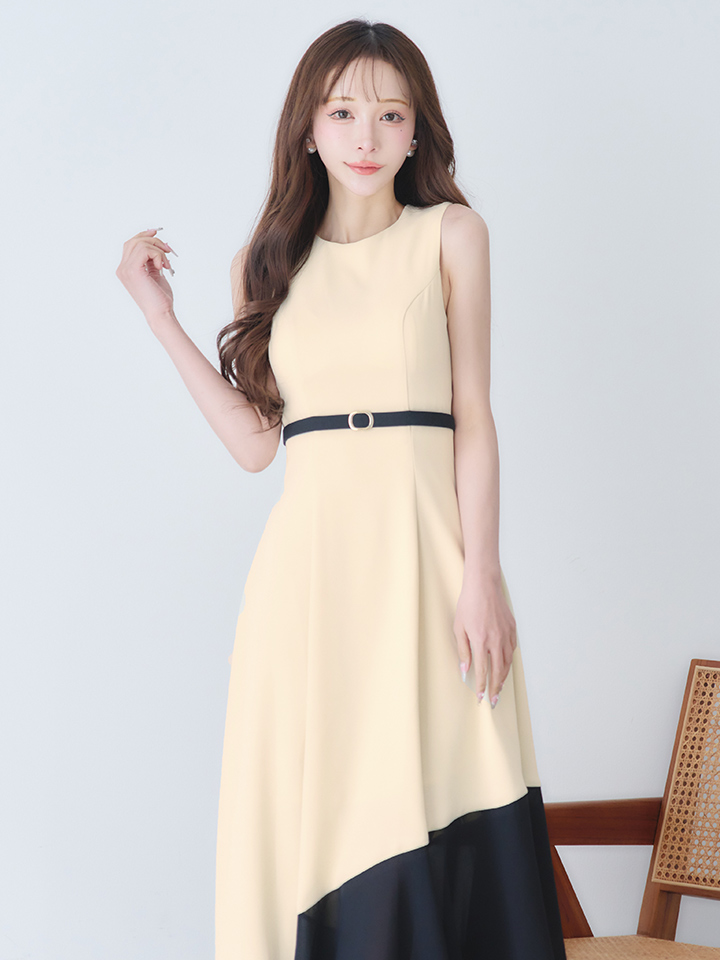 【VELIQUE/ヴェリーク】バイカラー/ ベルト/ ノースリーブ/ フレア/ Aライン/ ロングドレス/ キャバドレスlong【HC02】 [BYRS-233-GYxBL-S260217]