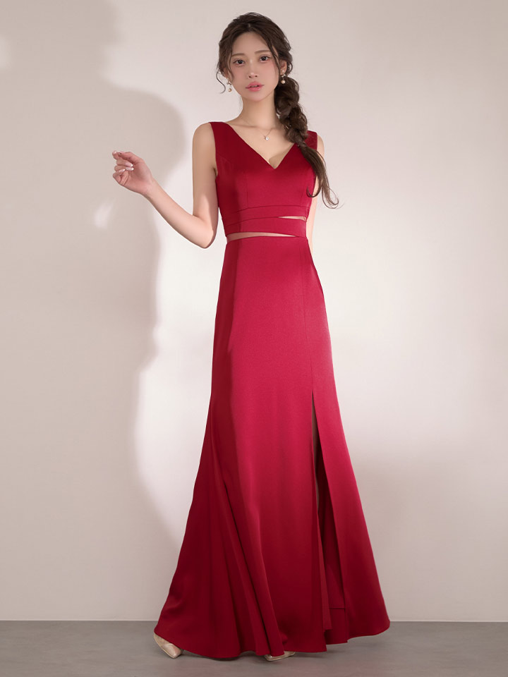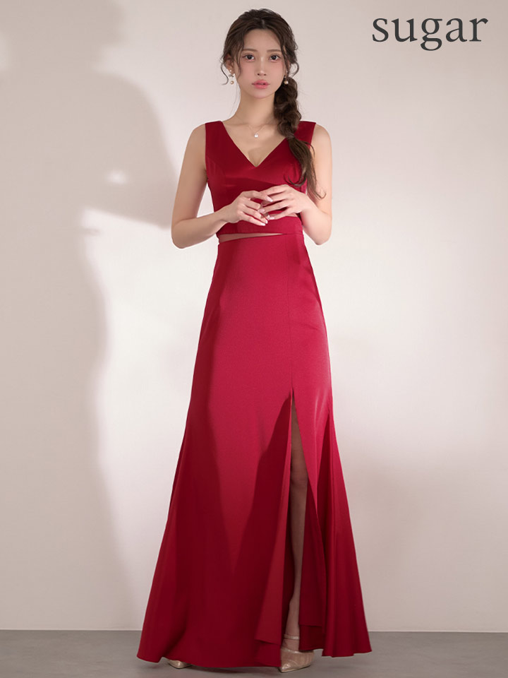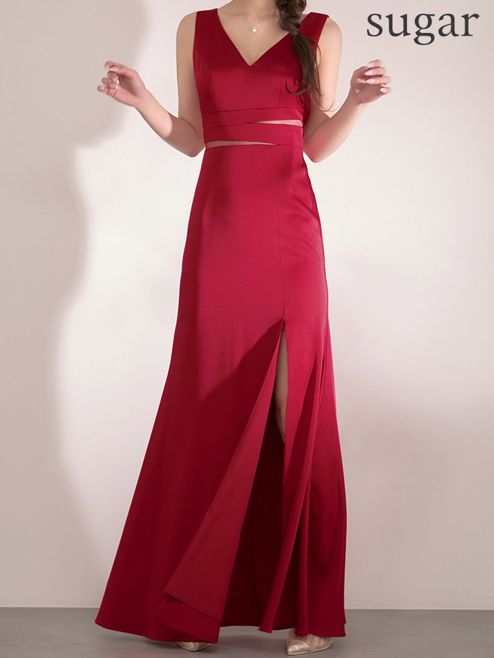 【予約商品/3月下旬発送予定】XS-Lサイズあり【SETTAN/セッタン】ワンカラー/ Vネック/ ウエストシアー/ ロングスリット/ ノースリーブ/ ロングドレス/ キャバドレス long[OF2] [LKS25349-R-S2602]