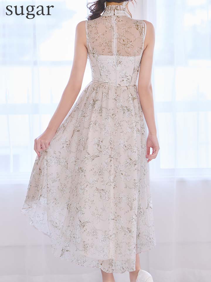 【予約商品/2月下旬発送予定】XSサイズあり【an /アン】フラワープリント/ ハイネック/ フリル/ テールカット/ ワンピース/ フレア/ ミディアムドレス/ キャバドレス[OF05] [AOC4091-P-S2602]