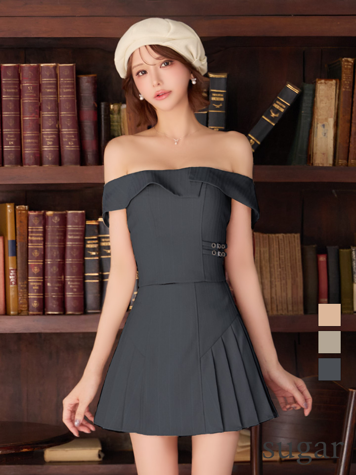 XSサイズあり【ANGEL R/エンジェルアール】オフショル/ レイヤードデザイン/ プリーツ/ セパレート/ Aライン/ フレア/ マイクロミニドレス/ キャバドレス[OF2] [AR26207-BE-S260218]