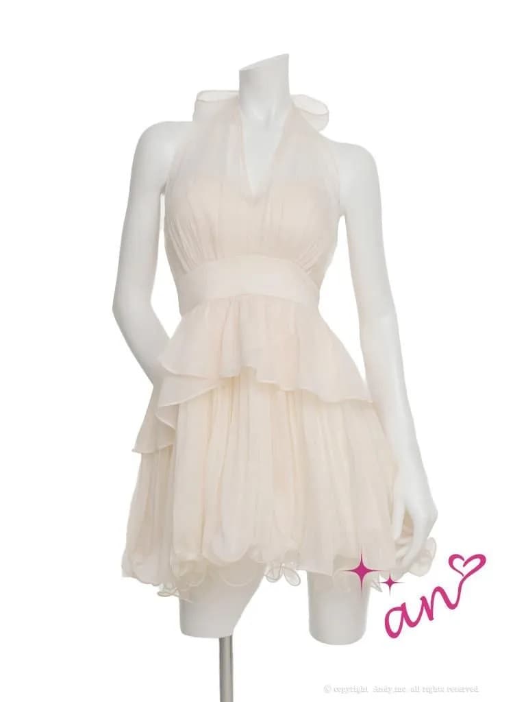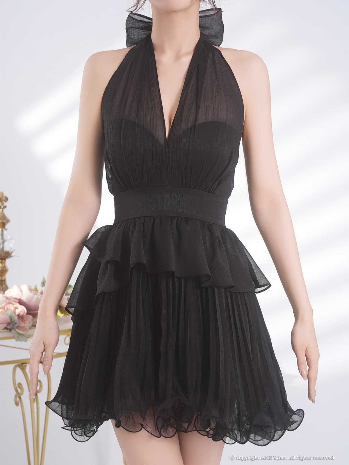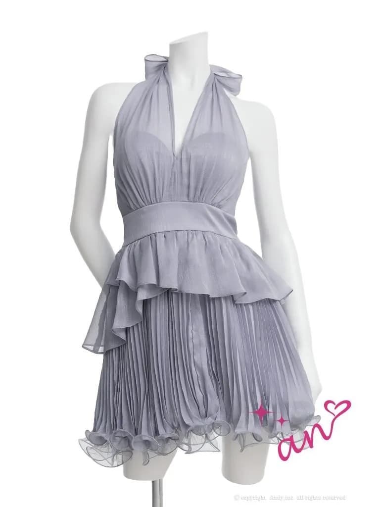 XSサイズあり【an/アン】ホルターネック/ シアー/ リボン/ シフォン/ プリーツ/ ハイウエスト/ Vネック/ ペプラム/ ティアード/ フリル/ フレア/ ミニドレス/ キャバドレス[OF05] [AOC4083-B-2602]