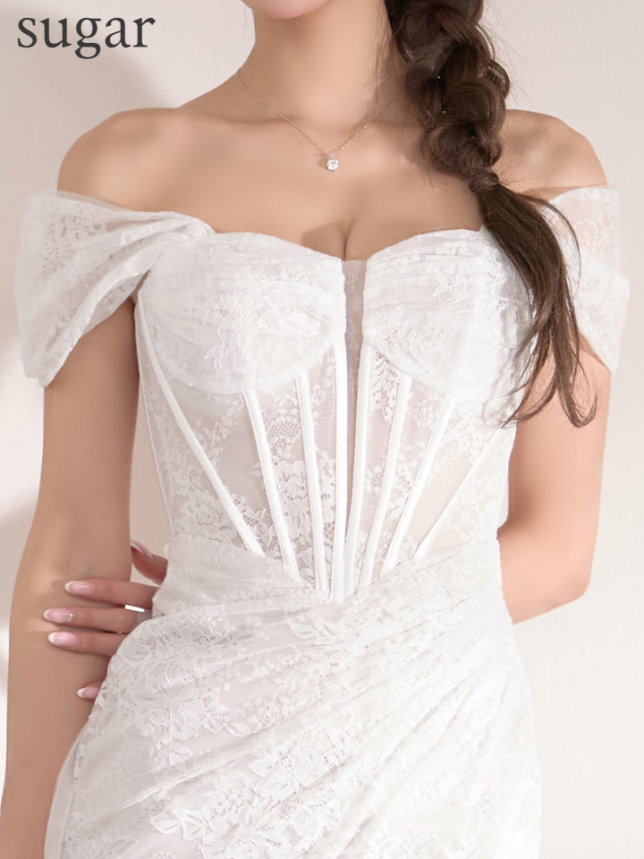 XS-Lサイズあり【SETTAN/セッタン】総レース/ シアー/ オフショルダー/ コルセット風/ スピンドル/ ギャザー/ スリット/ タイト/ マーメイド/ ロングドレス/ キャバドレス long[OF2] [LKS37220-R-S2602]