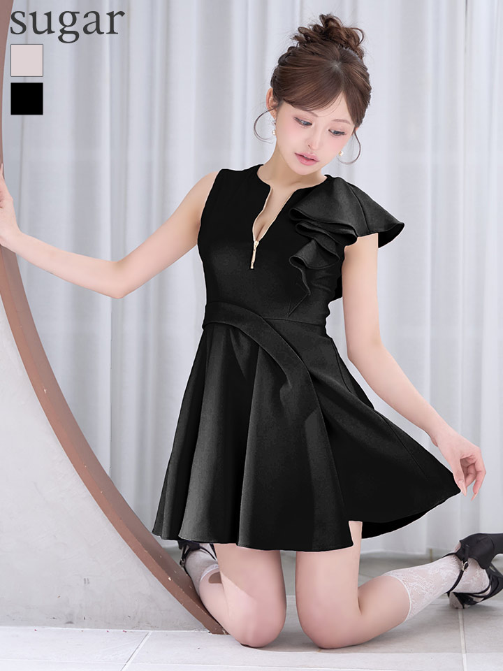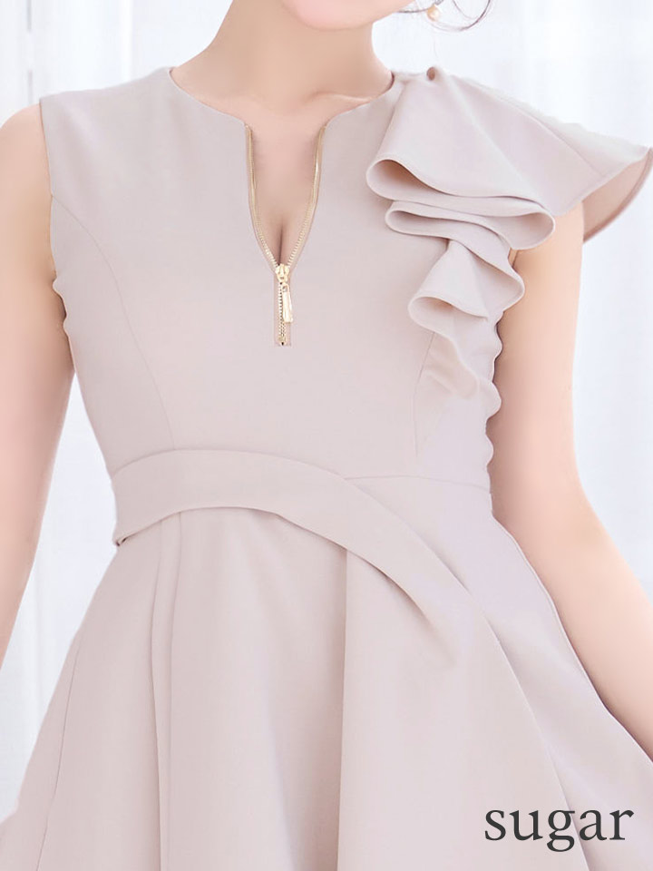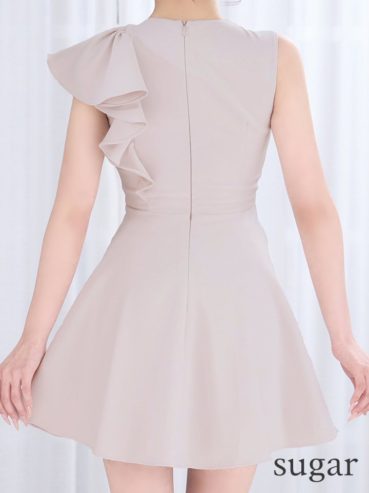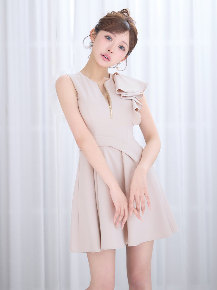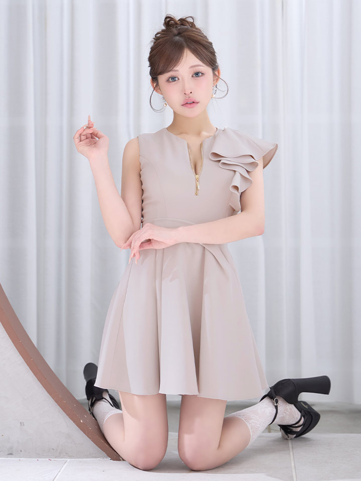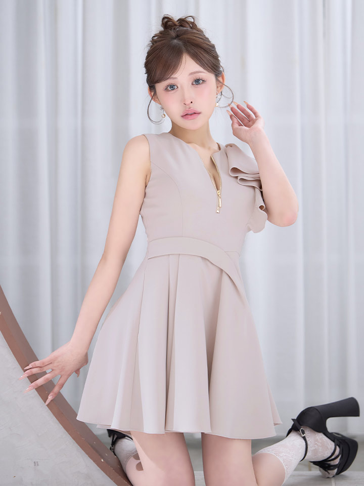 XSサイズあり【an /アン】アシメデザイン/ フレアスリーブ/ ノースリーブ/ バストジップ/ ウエストタック/ フリル/ フレア/ Aライン/ ミニドレス/ キャバドレス[OF05] [AOC4059-BE-S260220]