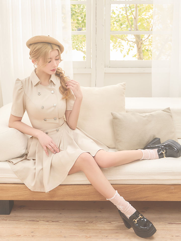 襟付きシャツで清楚で上品な雰囲気が魅力のフレアミニドレス♡