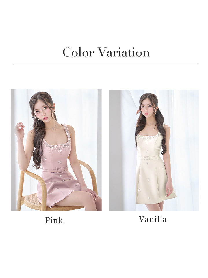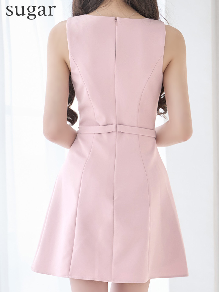 【予約商品/2月下旬発送予定】XSサイズあり【IRMA/イルマ】ベルト/ ビジュー/ ノースリーブ/ スクエアネック/ ラインストーン/ 台形スカート/ Aライン/ ミニドレス/ キャバドレス[OF2A] [61047-IR-softP-S260220]