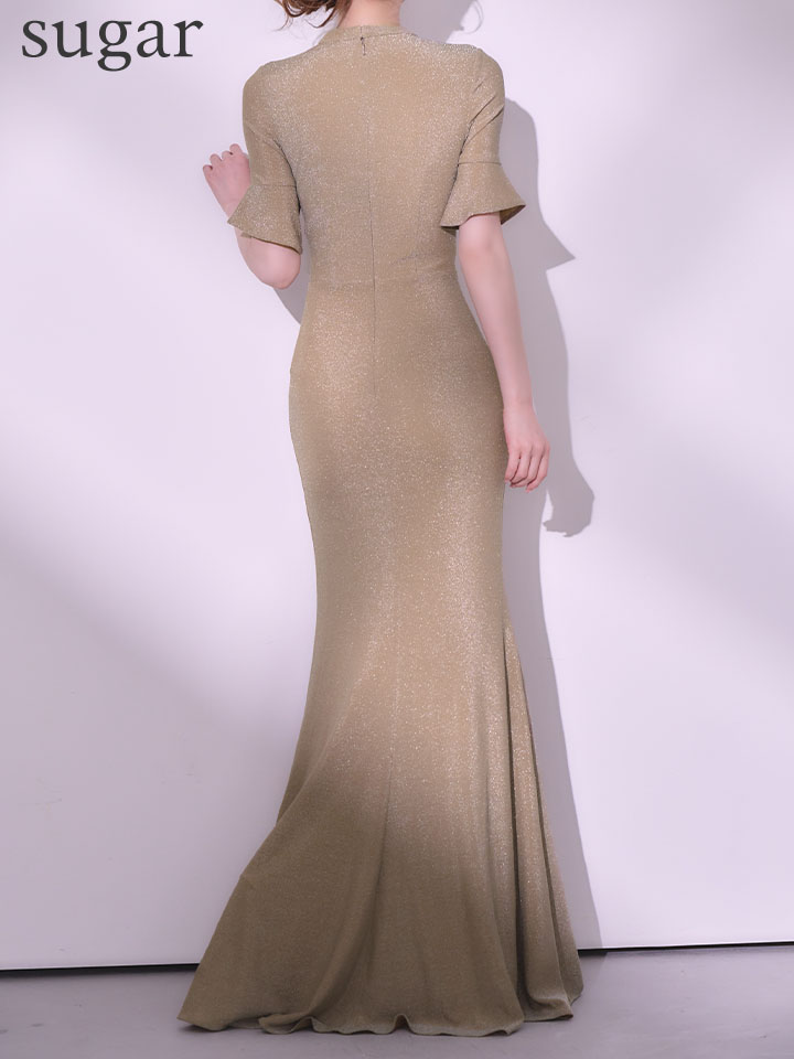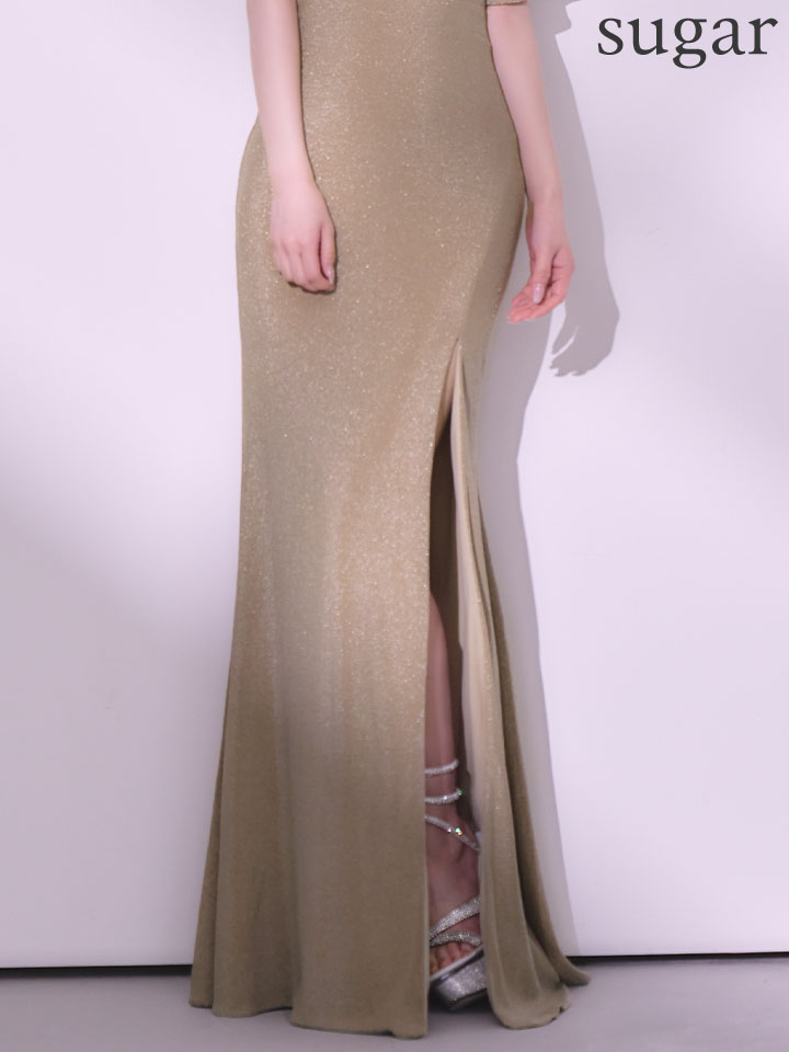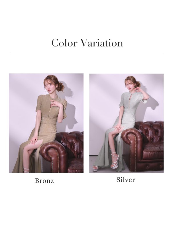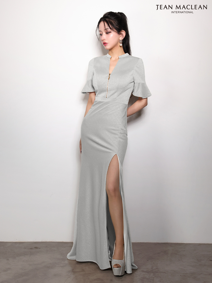 【予約商品/2月下旬発送予定】【JEAN MACLEAN/ジャンマクレーン】ラメニット/ ハイネック/ カットアウト/ フロントジップ/ ハーフスリーブ/ ストレッチ/ スリット/ ロングドレス/ キャバドレス long[OF2A] [61063-JM-SV-S260221]