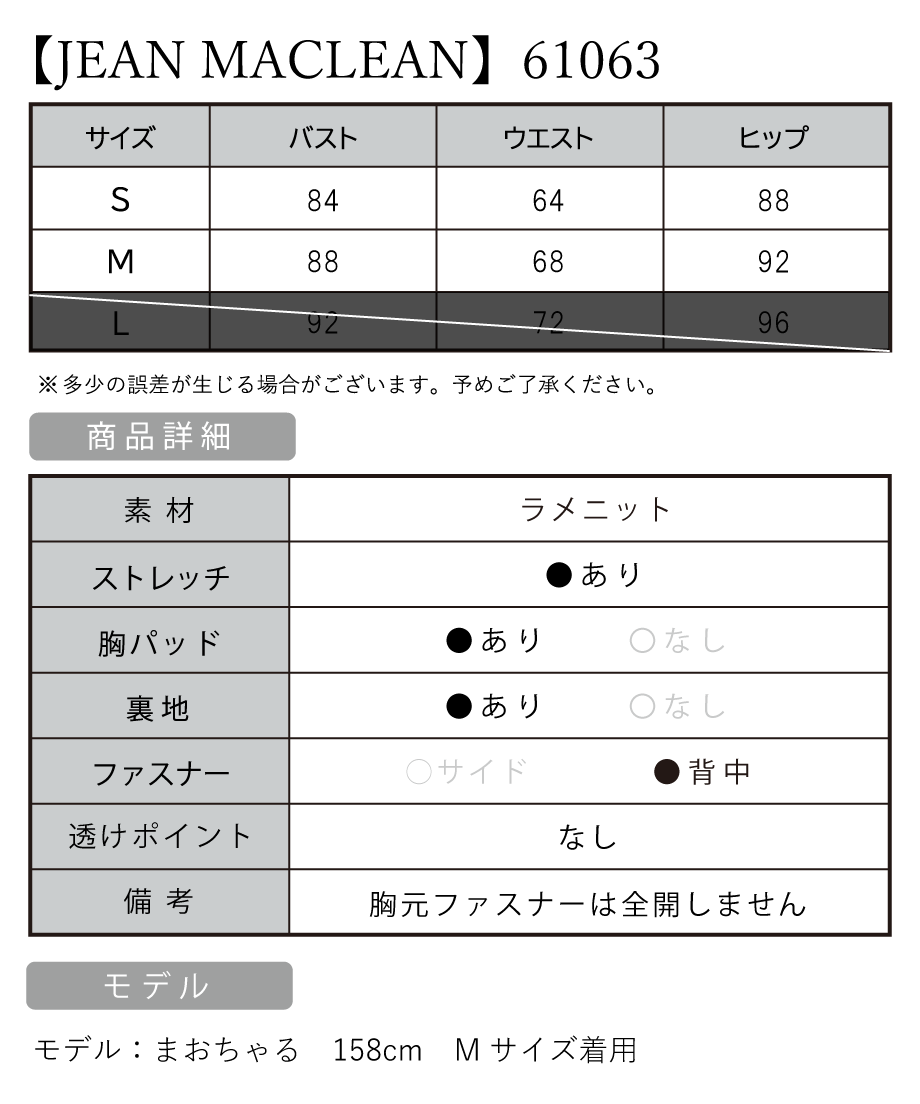 [ファスナー] バスト中央(全開しません)、後ろ