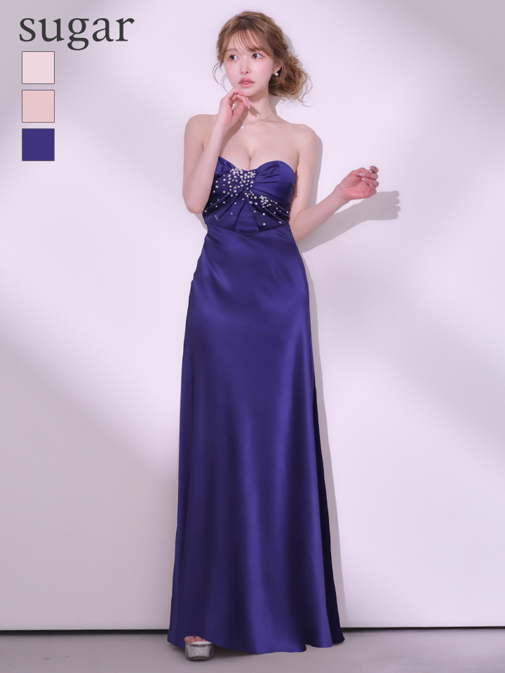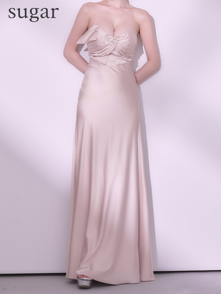 【ANGEL R/エンジェルアール】フロントドレープデザイン/ ベアトップ/ ビジュー/ パール/ 2way/ フレア/ ワンピース/ ロングドレス/ キャバドレス long[OF2] [AR26814-PL-S260221]