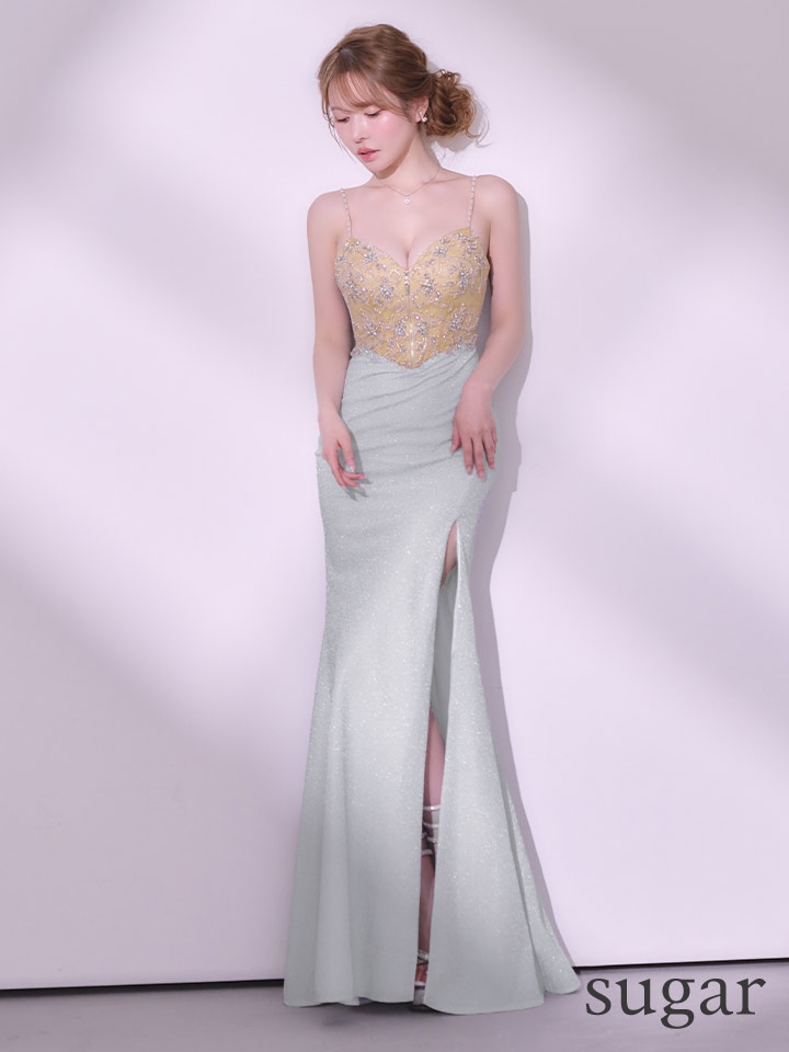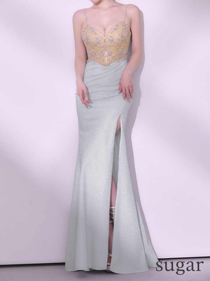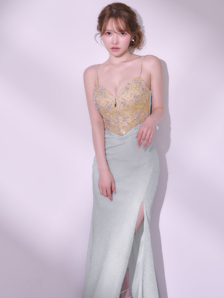 【予約商品/2月下旬発送予定】【IRMA/イルマ】オーロラビジュー/ ラメニット/ キャミ/ フロントジップ/ ビーズ刺繍/ スリット/ ロングドレス/ キャバドレス long[OF2A] [61056-IR-SV-S260221]