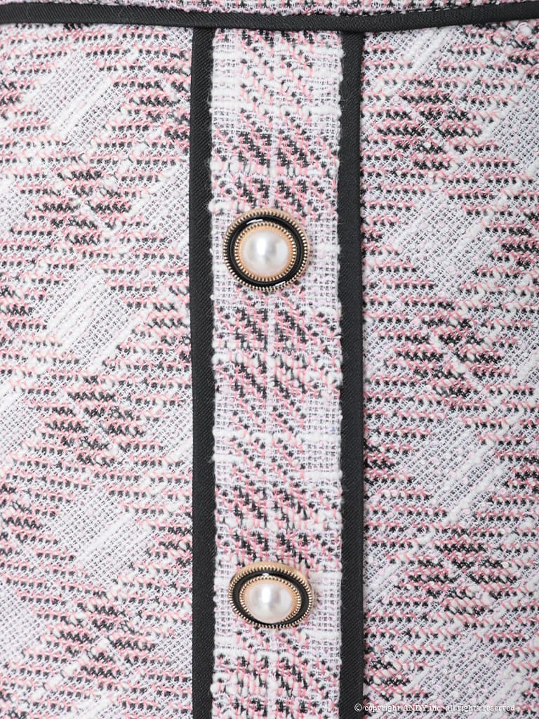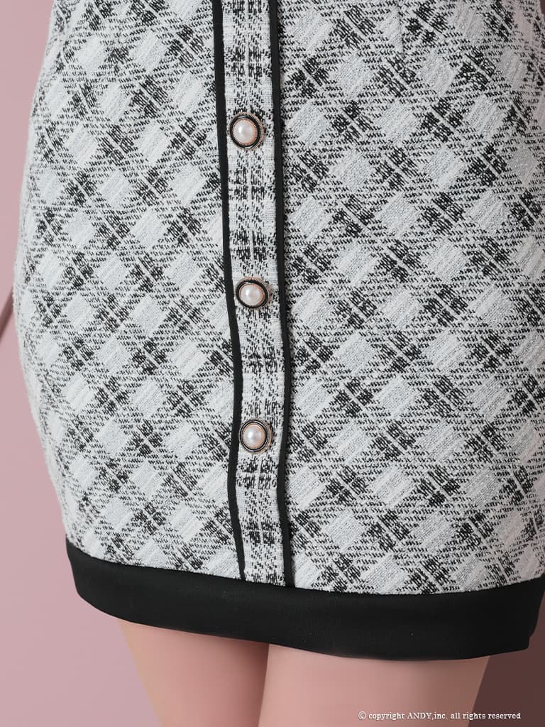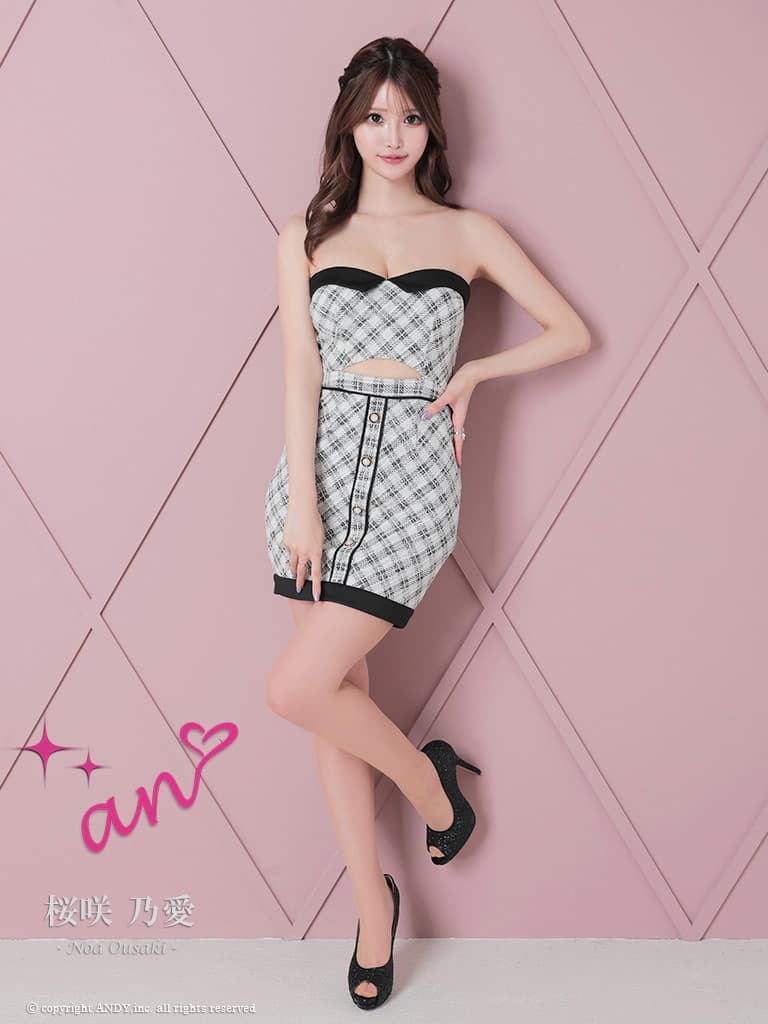 【an/アン】チェック柄/ ツイード/ 配色パイピング/ ウエストカット/ ストレッチ/ ベア/ ボタン/ リボン/ タイト/ ミニドレス/ キャバドレス[OF05] [AOC4016-Pck-2602]