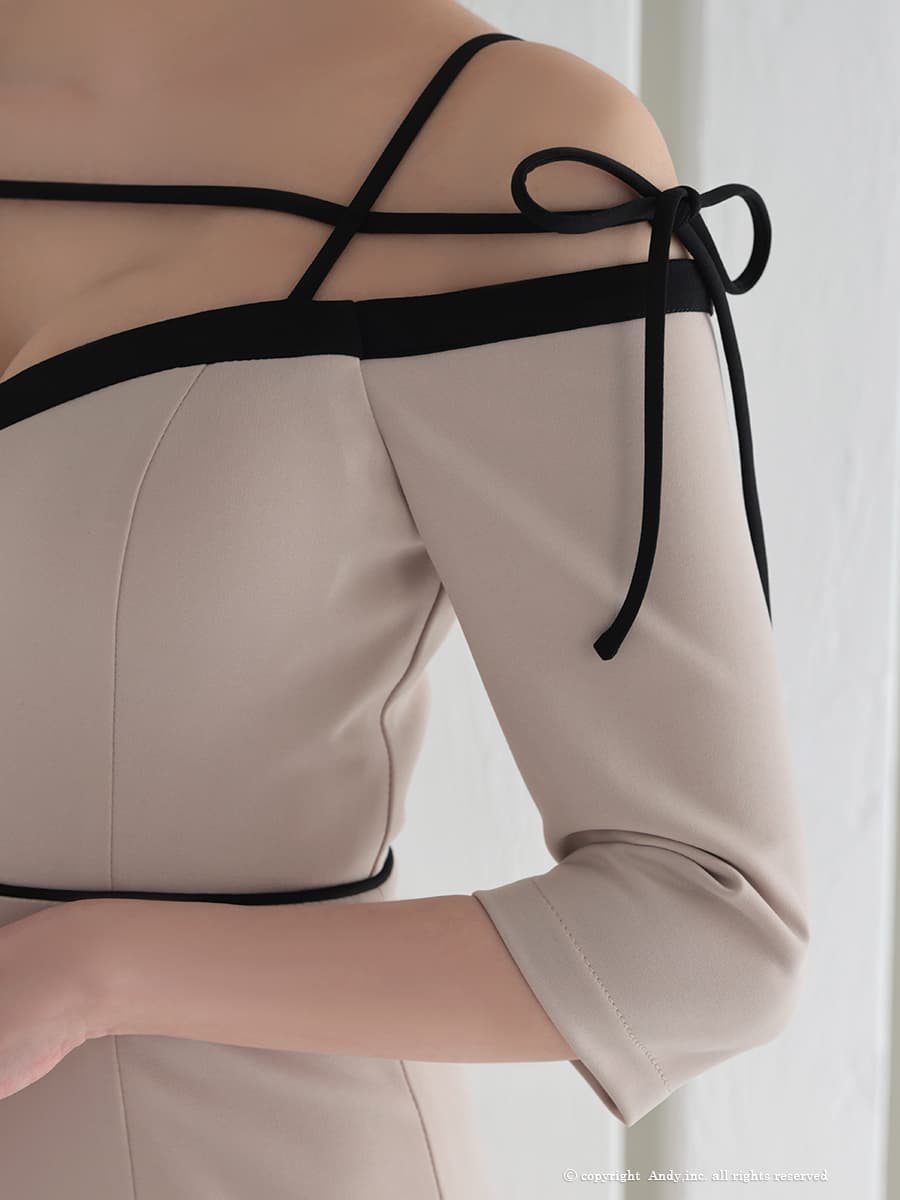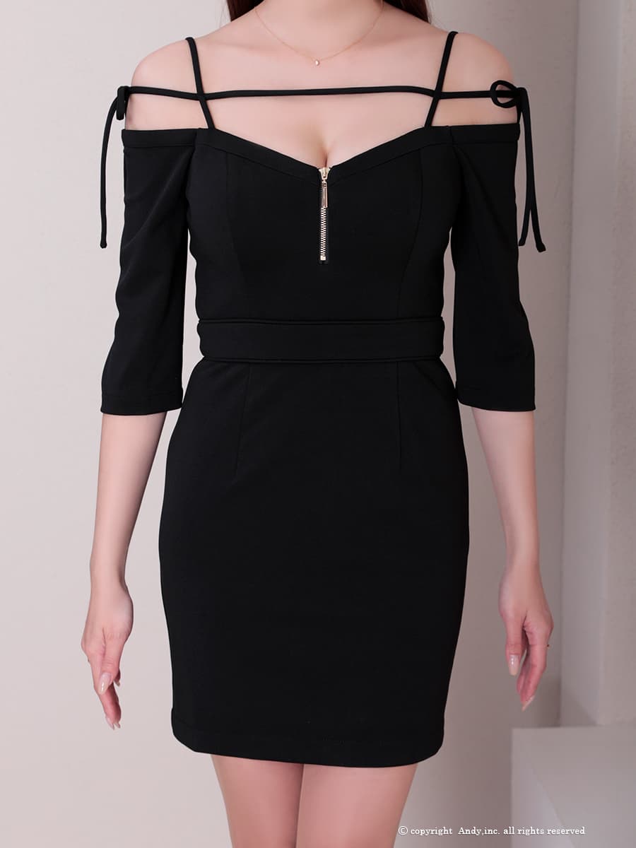 XSサイズあり【Andy GLAMOROUS/アンディグラマラス】オフショル/ バストジップ/ リボン/ 七分袖/ ハーフスリーブ/ ストレッチ/ タイト/ ミニドレス/ キャバドレス[OF05] [GMS-V854-BE-2602]