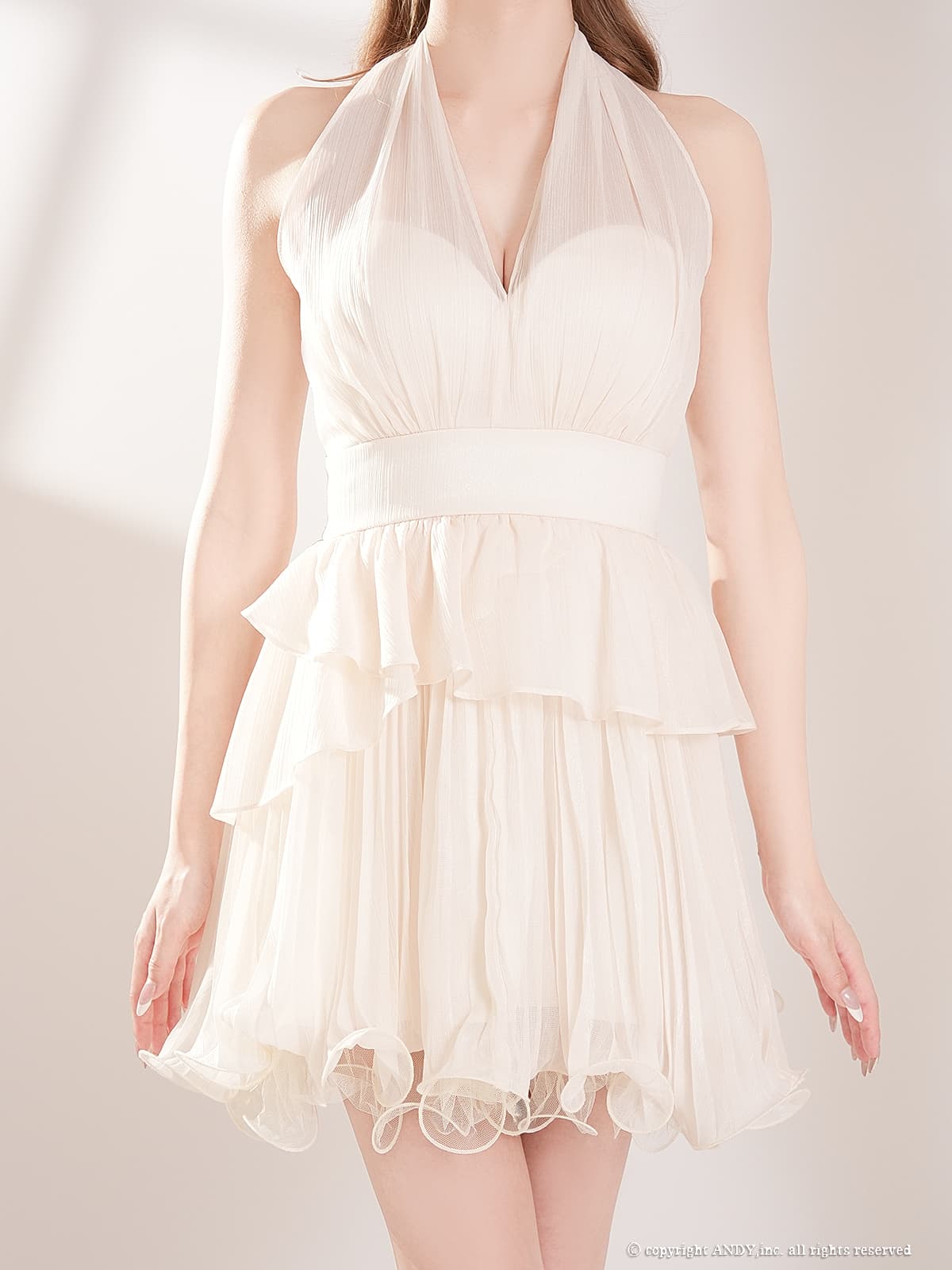 XSサイズあり【an/アン】ホルターネック/ シアー/ リボン/ シフォン/ プリーツ/ ハイウエスト/ Vネック/ ペプラム/ ティアード/ 2段フリル/ フレア/ ミニドレス/ キャバドレス[OF05]【一部予約商品/5月中旬-6月上旬発送予定】 [AOC4083-BL-2602]