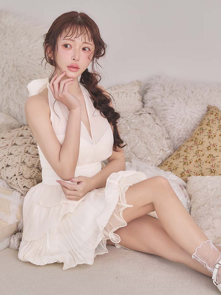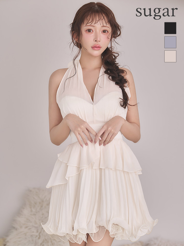 XSサイズあり【an/アン】ホルターネック/ シアー/ リボン/ シフォン/ プリーツ/ ハイウエスト/ Vネック/ ペプラム/ ティアード/ フリル/ フレア/ ミニドレス/ キャバドレス[OF05] [AOC4083-B-S260224]