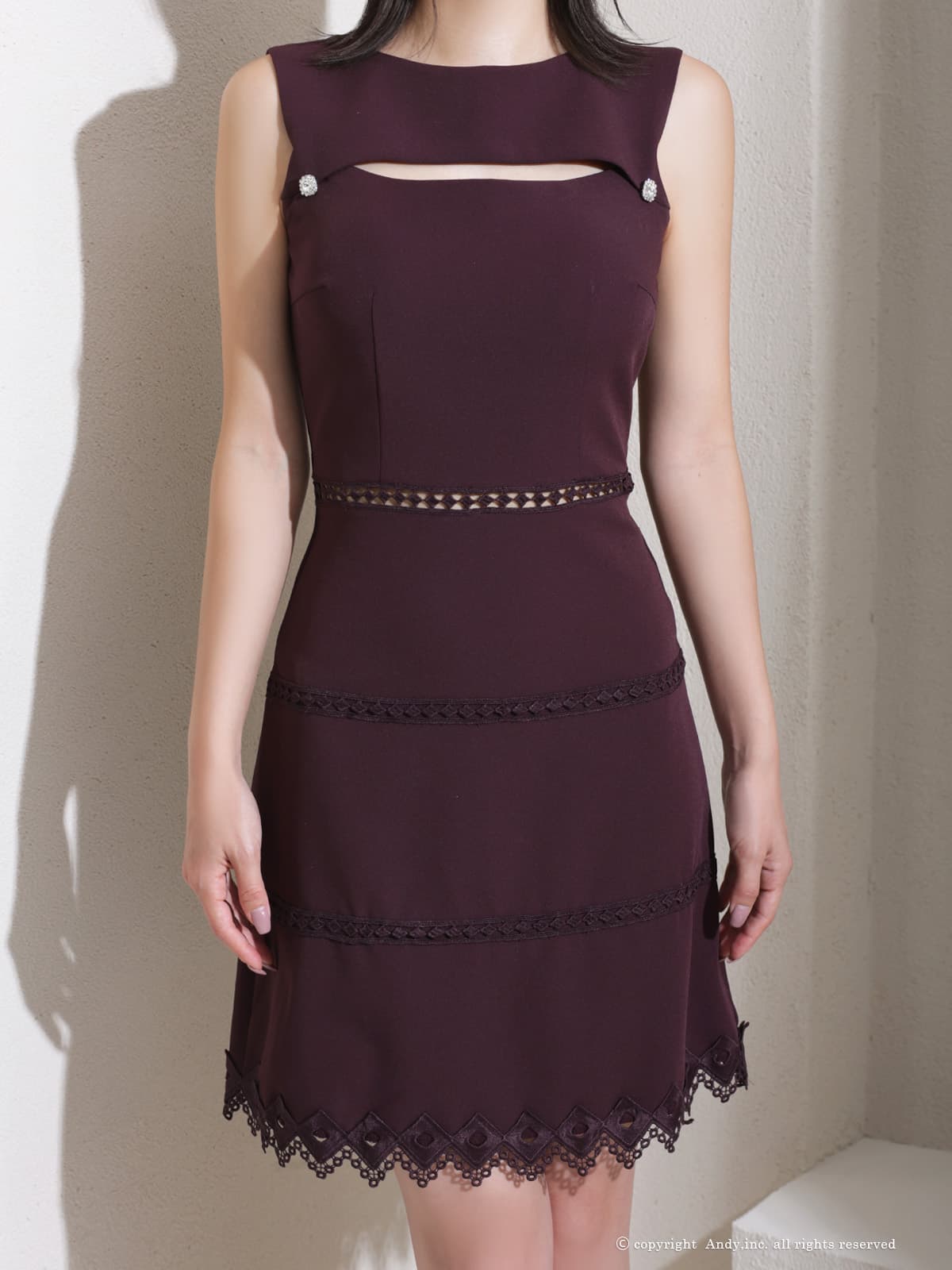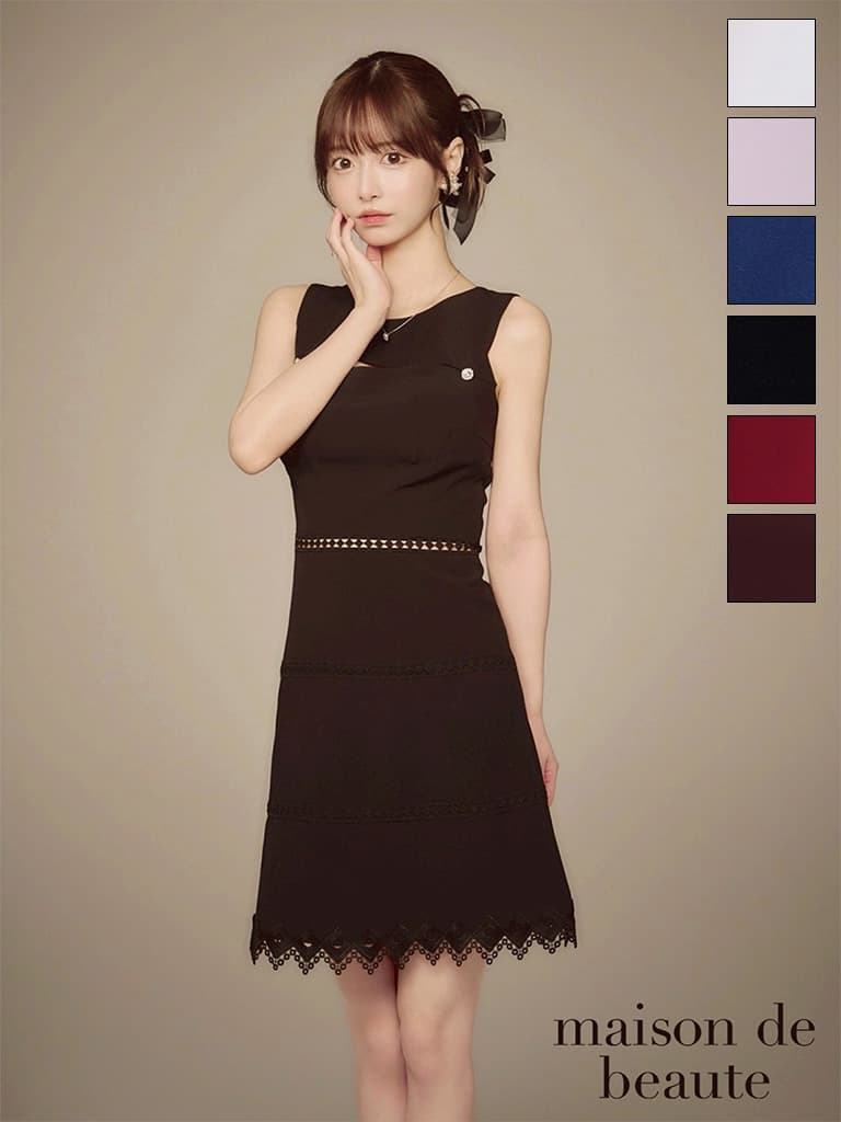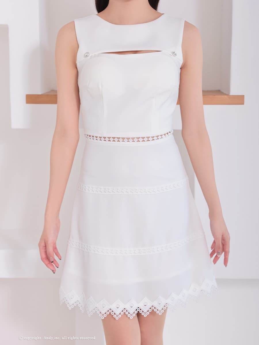【ANDY/アンディ】バストカットアウト/ ノースリーブ/ ボートネック/ レース/ シンプル/ ワンカラー/ フレア/ Aライン/ ミニドレス/ キャバドレス[OF05] [ON2915-BE-2602]