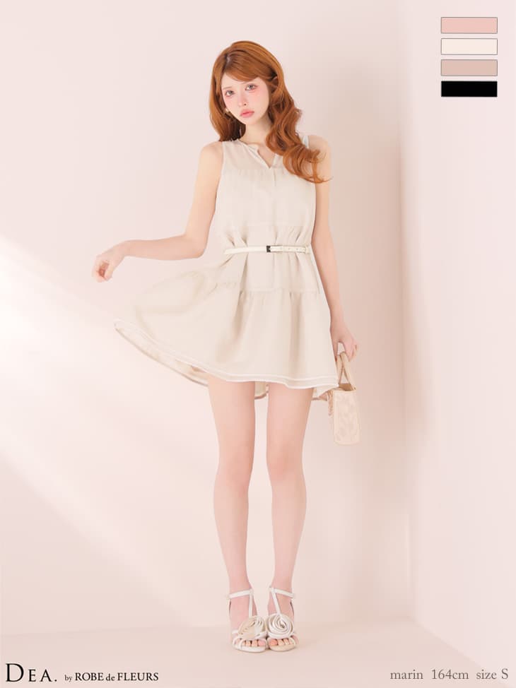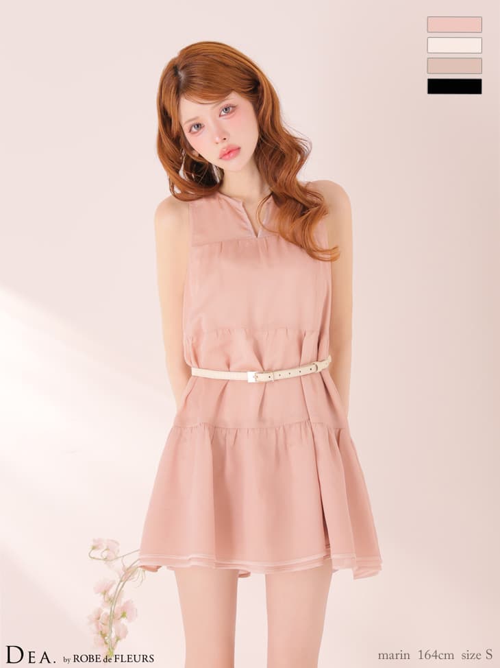XS-Lサイズあり【DEA./ディア】ギャザー/ ティアード/ シフォン/ ベルト付き/ フレア/ ミニドレス/ キャバドレス[OF08] [DE4654-B-2602]
