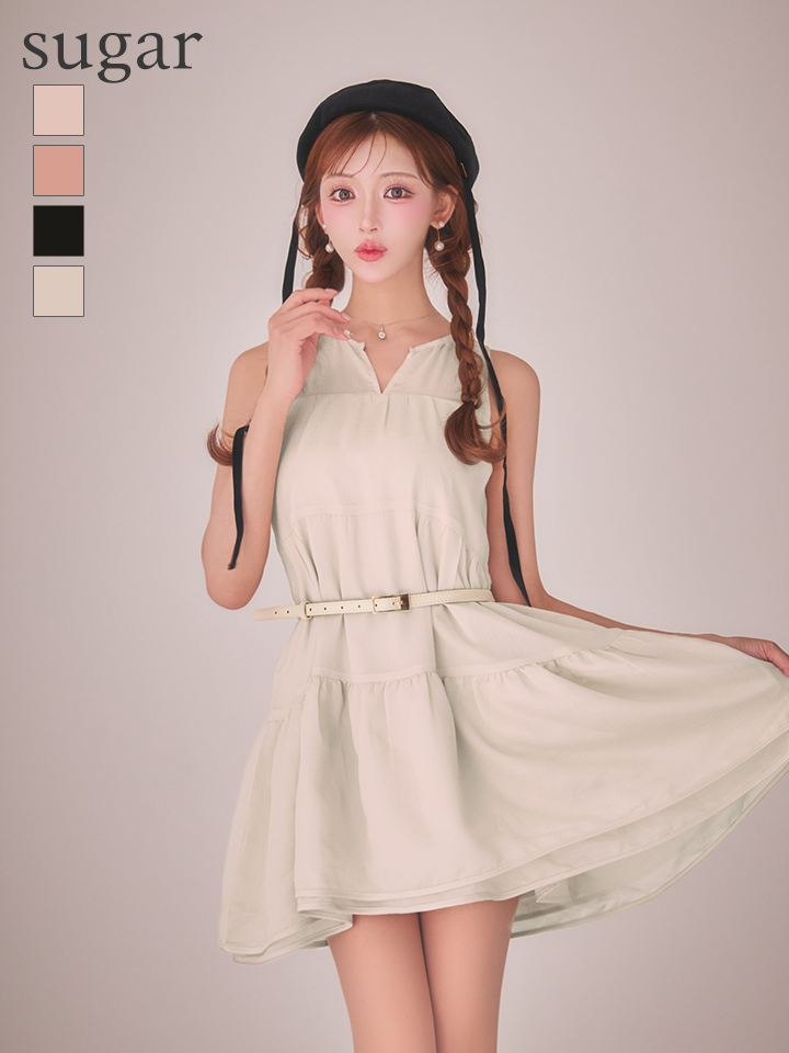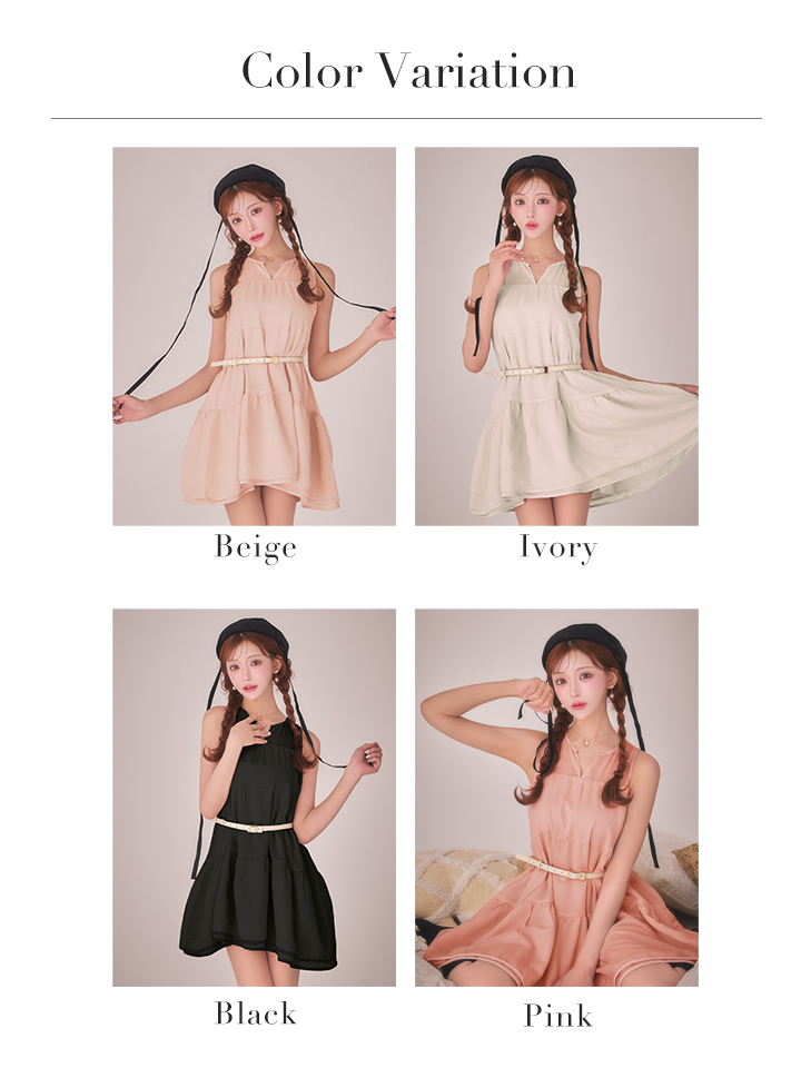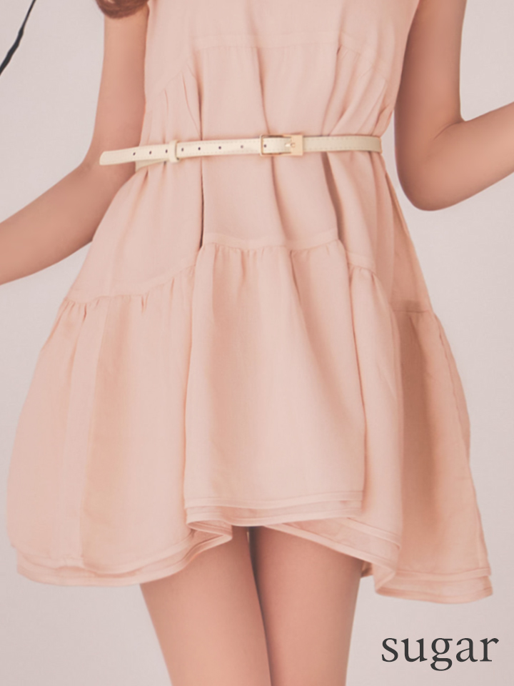 XS-Lサイズあり【DEA./ディア】ギャザー/ ティアード/ シフォン/ ベルト付き/ フレア/ ミニドレス/ キャバドレス[OF08] [DE4654-B-S260224]