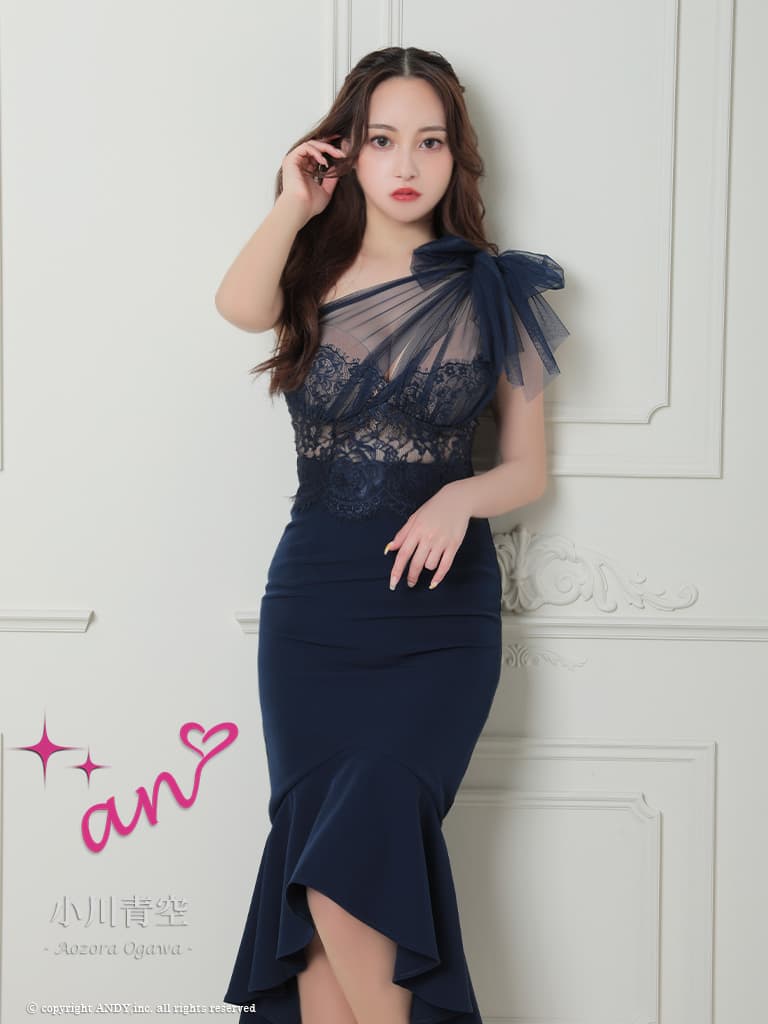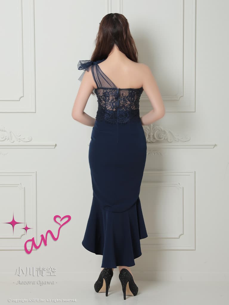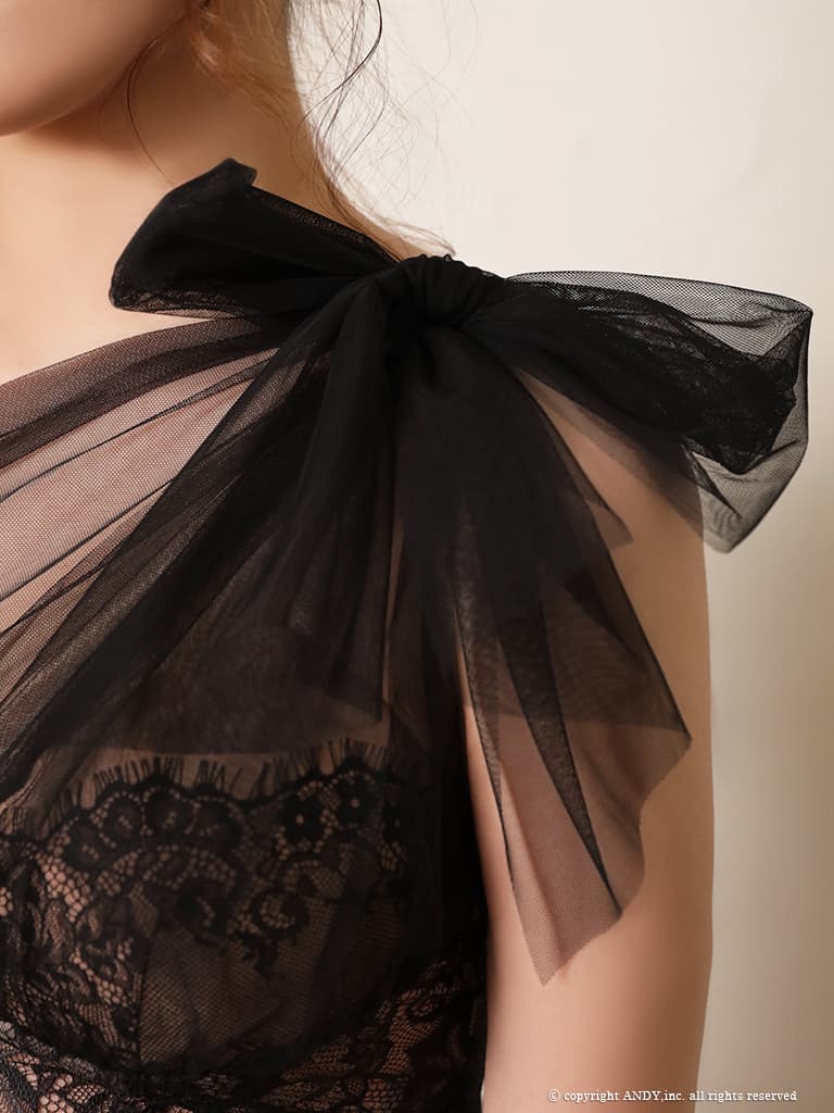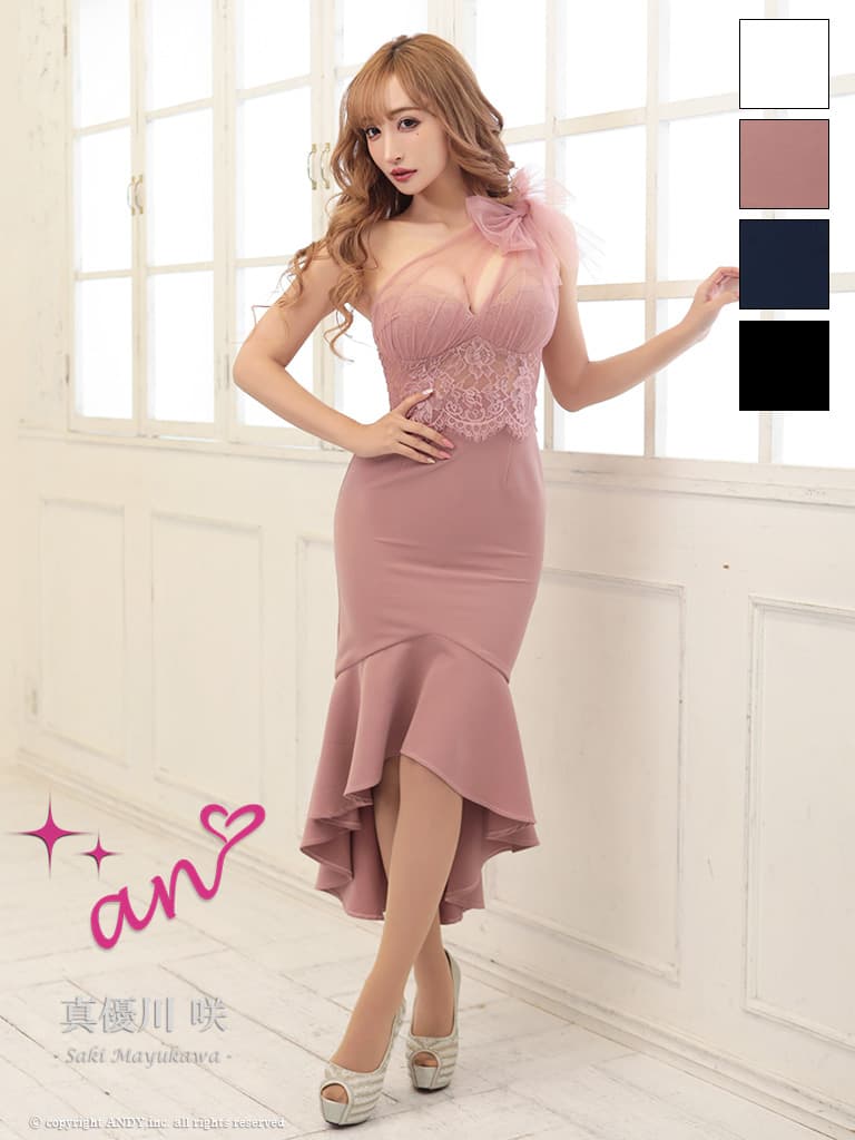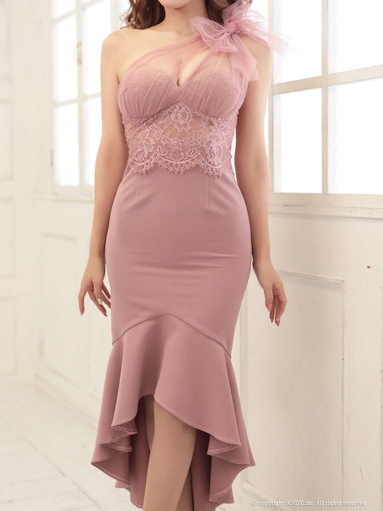 【an /アン】チュールリボン/ ワンショルダー/ シアーレース/ マーメイド/ テールカット/ ワンピース/ ミディアムドレス/ キャバドレス[OF05] [AOC4093-P-2602]