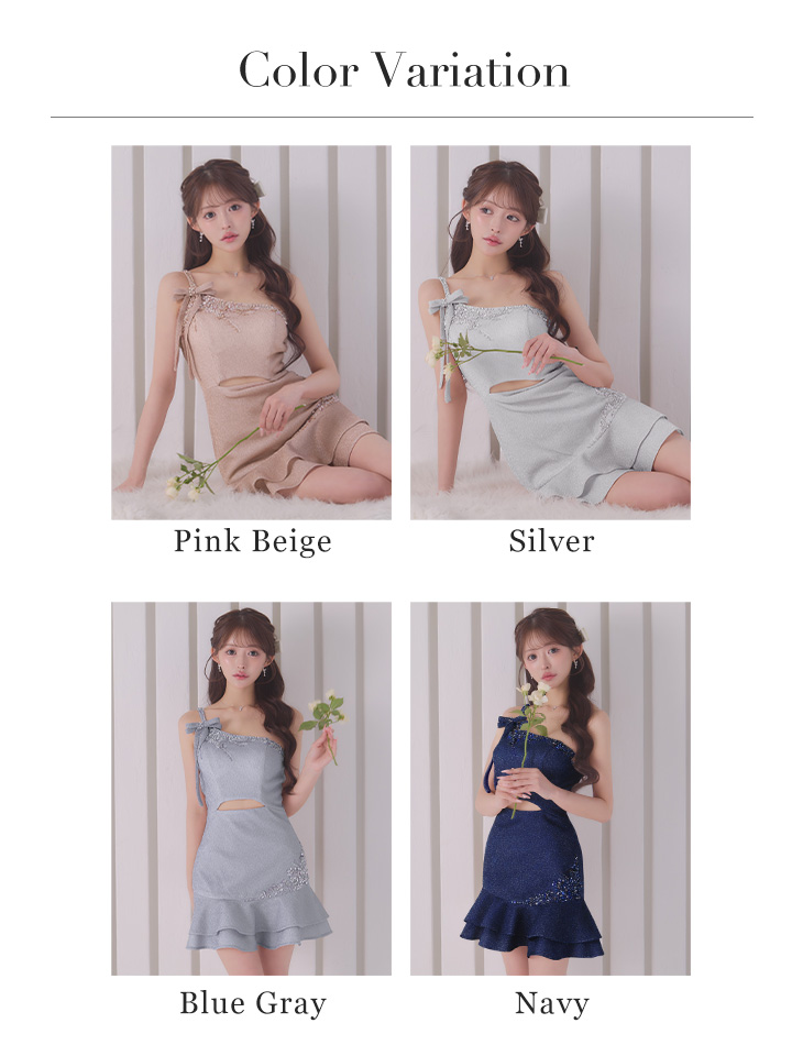 XSサイズあり【IRMA/イルマ】ラメニット/ リボン/ ワンショルダー/ ビーズ刺繍/ ティアードフリル/ フレア/ ウエストカット/ ストレッチ/ ミニドレス/ キャバドレス[OF2A] [61021-IR-DKBL-S260119]
