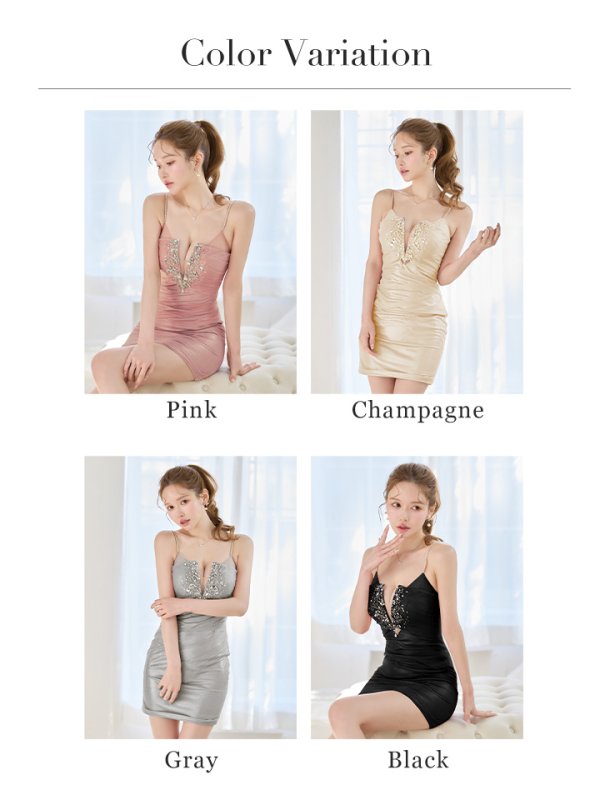 XSサイズあり【ANGEL R/エンジェルアール】バストVカット/ ウエストタック/ ビジュー/ タイト/ ミニドレス/ キャバドレス[OF2] [AR26311-GY-S260226]