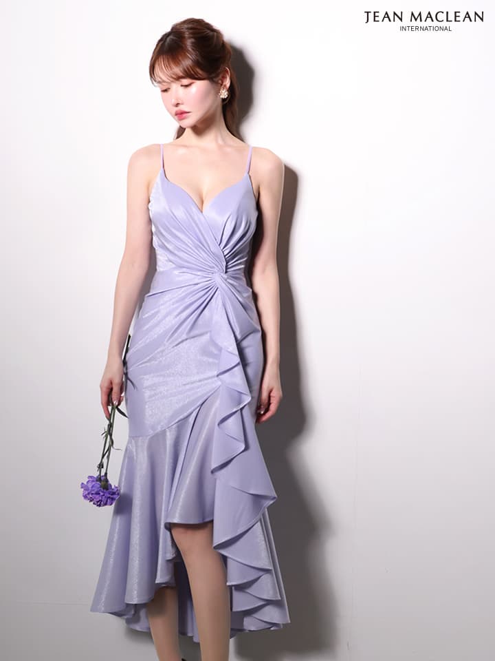 【予約商品/2月下旬発送予定】XSサイズあり【JEAN MACLEAN/ジャンマクレーン】 マーメイド/ シャイニーサテン/ タック/ キャミソール/ ひざ丈/ ストレッチ/ フリル/ テールカット/ ミディアムドレス/ キャバドレス[OF2A] [61054-JM-SV-2602]