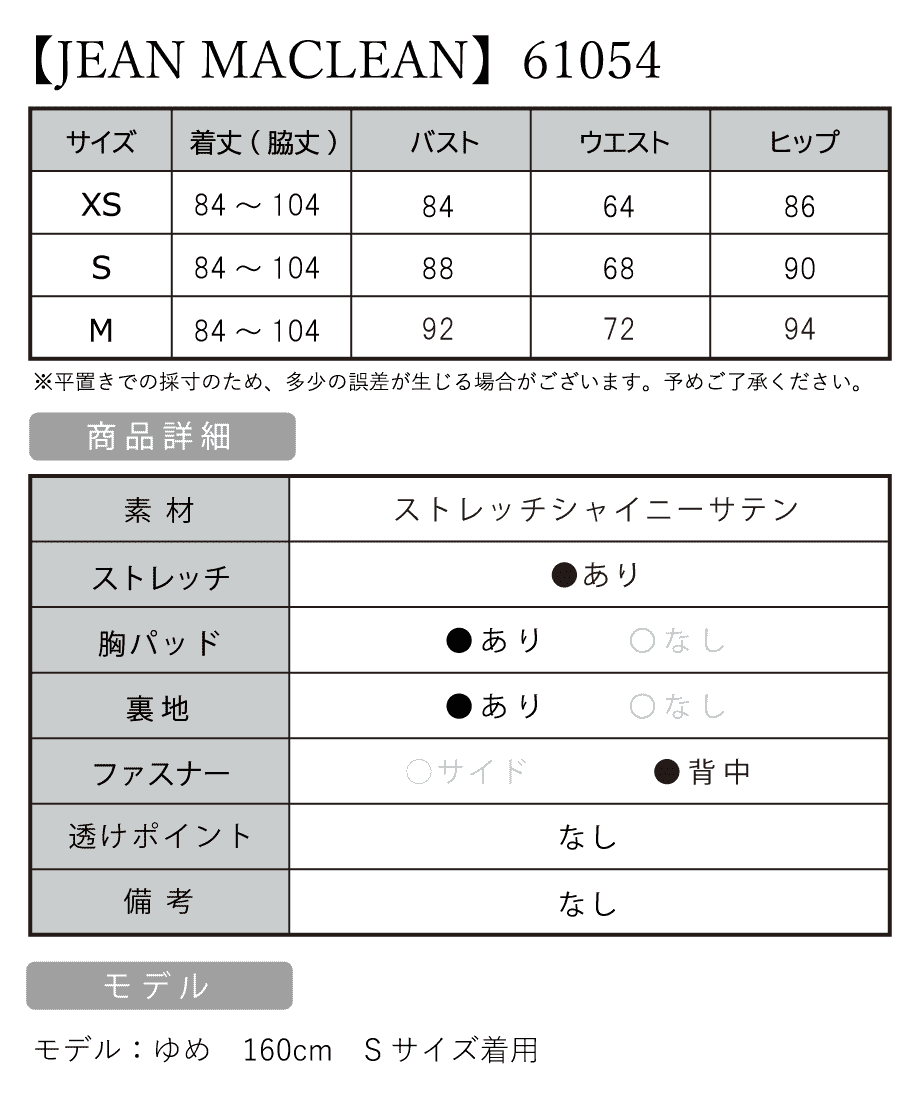 B:84 / W:64 / H:86 [着丈](脇下)約84-104cm |