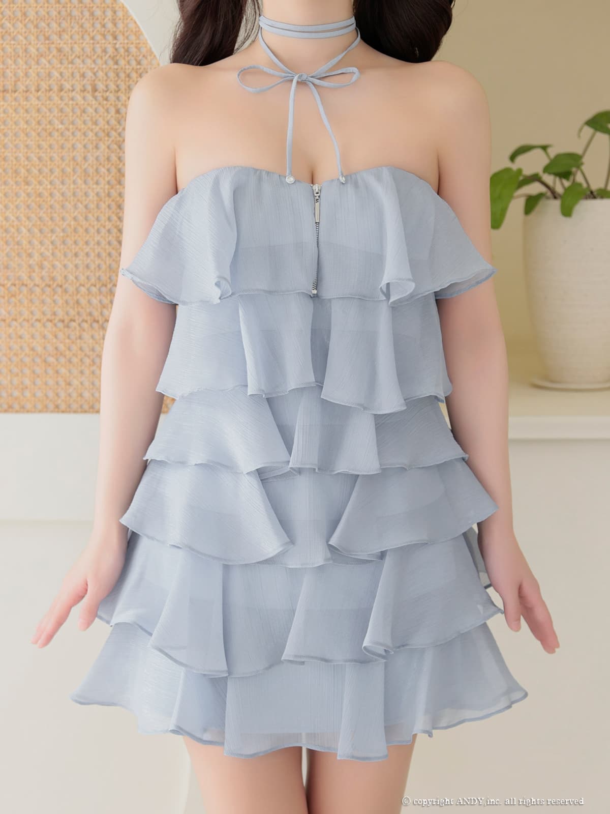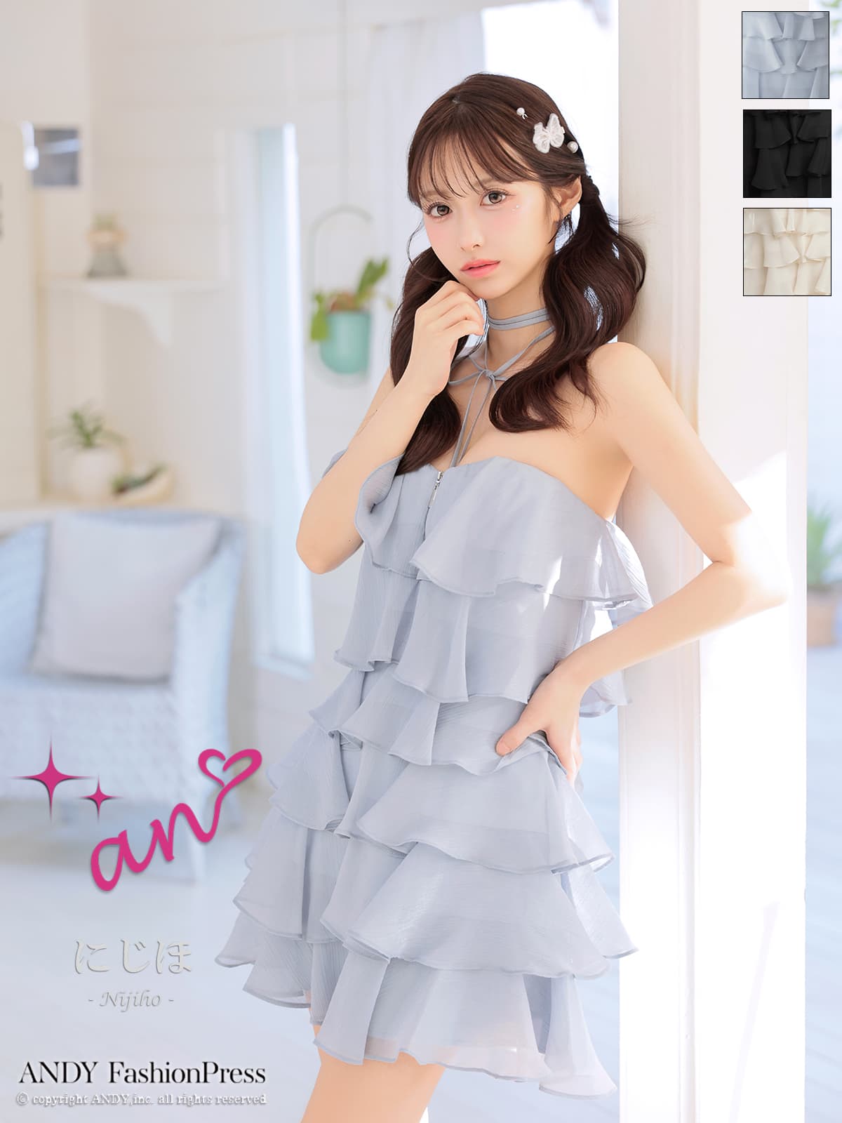 XSサイズあり【an/アン】リボンチョーカー付き/ シフォン/ ティアード/ メロウフリル/ バストジップ/ フレア/ Aライン/ ベア/ ミニドレス/ キャバドレス[OF05] [AOC4087-IV-2602]